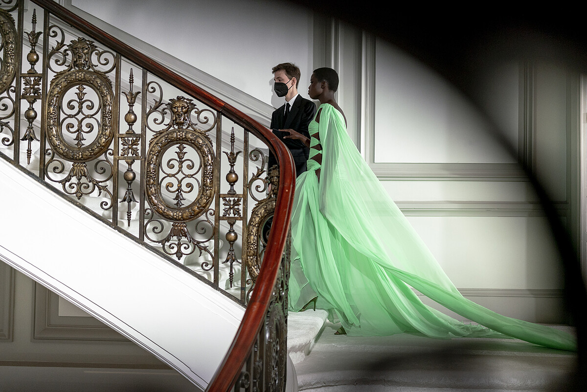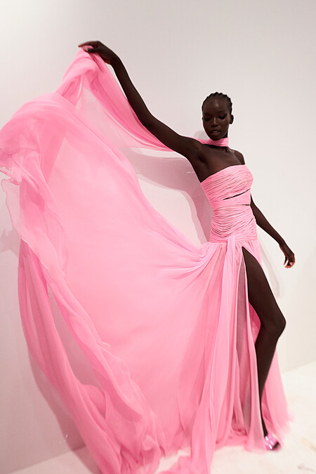 在保有高級訂製服的優雅輪廓下,善於擁抱色彩的Pierpaolo Piccioli,亦嘗試了如草綠、桃紅、鮭魚粉、葡萄紫等許多亮眼的色彩,仔細雕琢禮服上的每一個細節,讓服裝自己說故事。