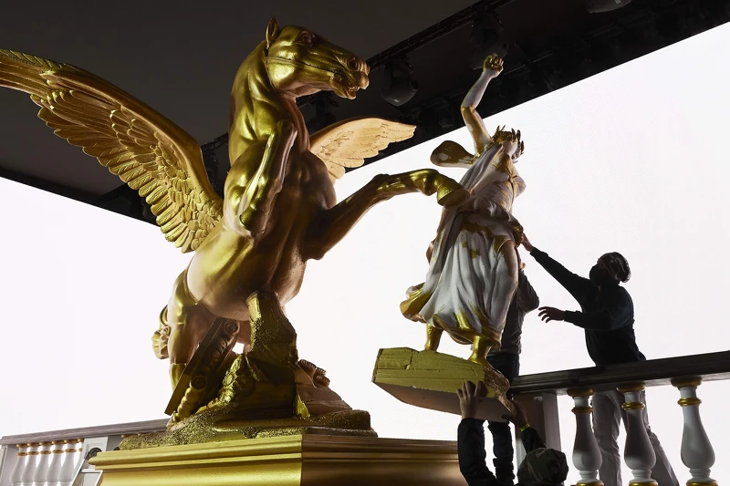 本次品牌為了真實復刻巴黎亞歷山大三世橋(Pont Alexandre III)上的經典場景,Pont Alexandre III 被世人認為是位於巴黎最美與華麗的一座橋梁。品牌搭建的這座橋梁更投映了塞納河畔的清晨景致,為的就是真實重現巴黎街頭的真實樣貌,這也意味設計師對巴黎這座城市的真實情感與致敬。