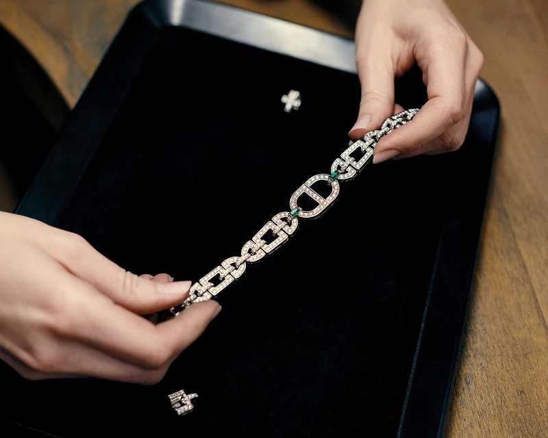 來自法國工坊的工藝技術,將高級面料與設計細節巧妙揉合,像是精緻的刺繡圖騰、以科技機能面料展現現代運動風格,時裝早已不再曲高和寡,走入日常,在正式與休閒間,實用主義與前衛理念,豹紋、玲蘭、鎖鏈、藤紋、星星及玫瑰,設計師將品牌的經典符碼帶入當代,保留了 Dior 先生最初的期盼,不為了刻意展現自身風格,而是連結過去賦予新意,開拓屬於 Kim Jones 的新視野。另外,珠寶創意總監 Victoire de Castellane 與新世代配件新銳 Yoon Ahn(Ambush 主理)攜手打造的鑽石祖母綠手鍊,保留了雙方極致的「玩心」,在男裝系列上受到矚目。性別非二元這件事早就融入時裝日常,如果妳還覺得男生不能配戴珠寶,那就太跟不上時代了。
