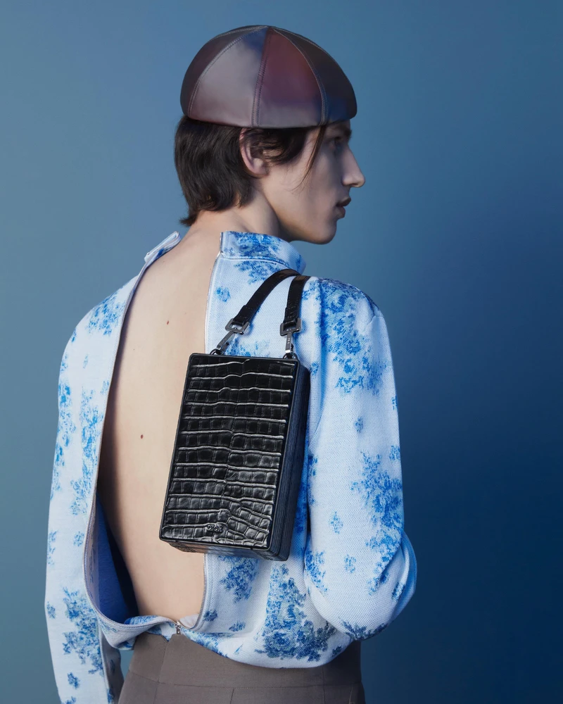 閃閃發光的珠寶 Derby Shoes 延續一系列男裝的華麗風格,與本季打著實用旗幟的 Dior by Birkenstock 形成強烈對比,包款設計融入更具結構感的細節。而帽飾設計師 Stephen Jones 為男人們設計的 Doris 貝雷帽,更為系列添入一絲玩味俏皮,除了老爹帽、漁夫帽,今年,無論男女都該留意收藏一頂貝雷帽。