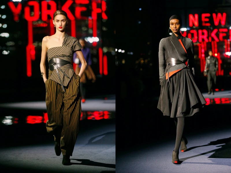 2022秋冬系列選址在哈德遜廣場的高樓樓頂,讓紐約市絢麗的都市夜景作為秀場舞台的一部分,背景緩緩響起車水馬龍的喇叭聲,模特兒接著緩緩走出⋯⋯。