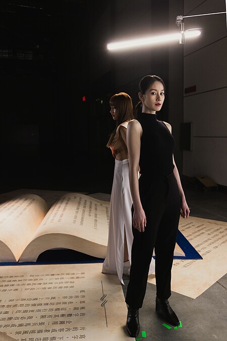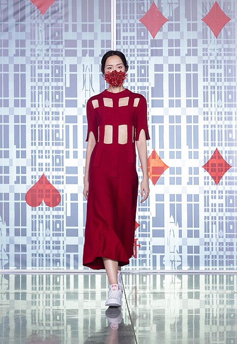 上述猶如經歷一場《愛麗絲夢遊仙境》般的科幻歷險,回到服裝面,像是運用特殊皮革製作的禮服,就帶有神秘的特務氣質。又或是 Slim Fit 剪裁的正裝搭配鑰匙別針,巧妙帶出了何為「信物保管者」角色意涵。「時間管理者」則是運用有著當代氣息的傳統旗袍設計呈現,穿梭古今。其中還有東西方文化合併的馬甲禮服與魔幻色調,都讓系列更趨完整與多元,同時保有創作者欲傳達的超現實氛圍。