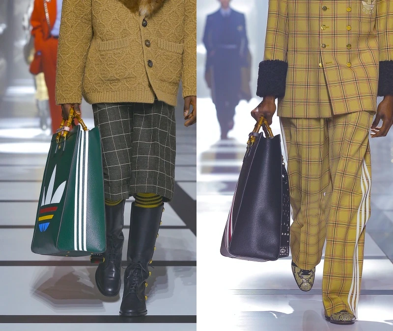 Gucci經典重現的竹節包,在2022秋冬系列變大了,Alessandro Michele在包身加上adidas經典標誌。