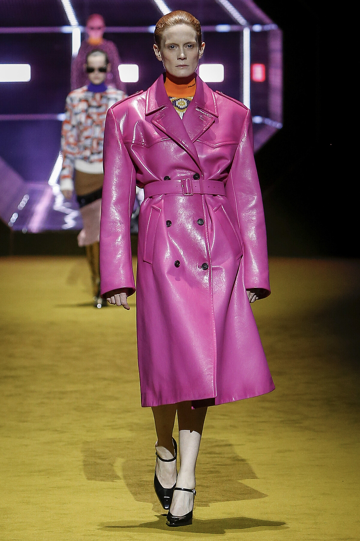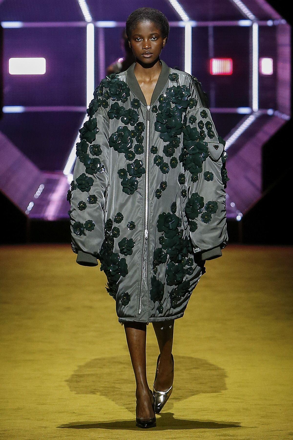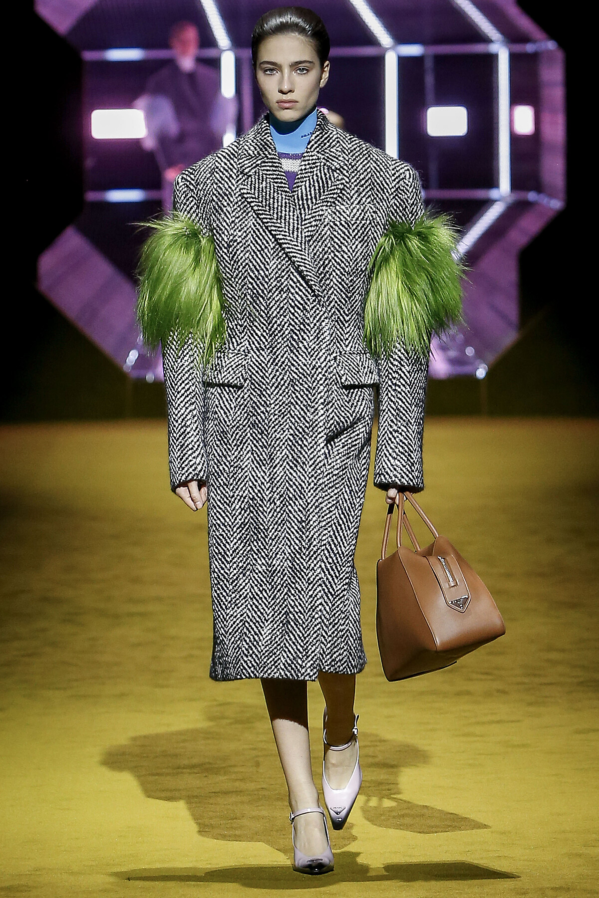 系列概念以女性的成長為題,藉此輔助人們的記憶,喚起對生活的片段。轉換到服裝面,實用主義貫穿系列,Raf Simons 將更多的實用性融入設計,卻不會顯得過於遷就,依然保有他一貫的嗅覺與美感,剪裁俐落的服裝輪廓,簡約卻深具力道。色調視覺上除了經典的 Prada 式印花圖紋,大多是走大地色系或是簡單的黑、白、灰,比重相對少的桃紅與亮綠卻也為系列畫龍點睛。