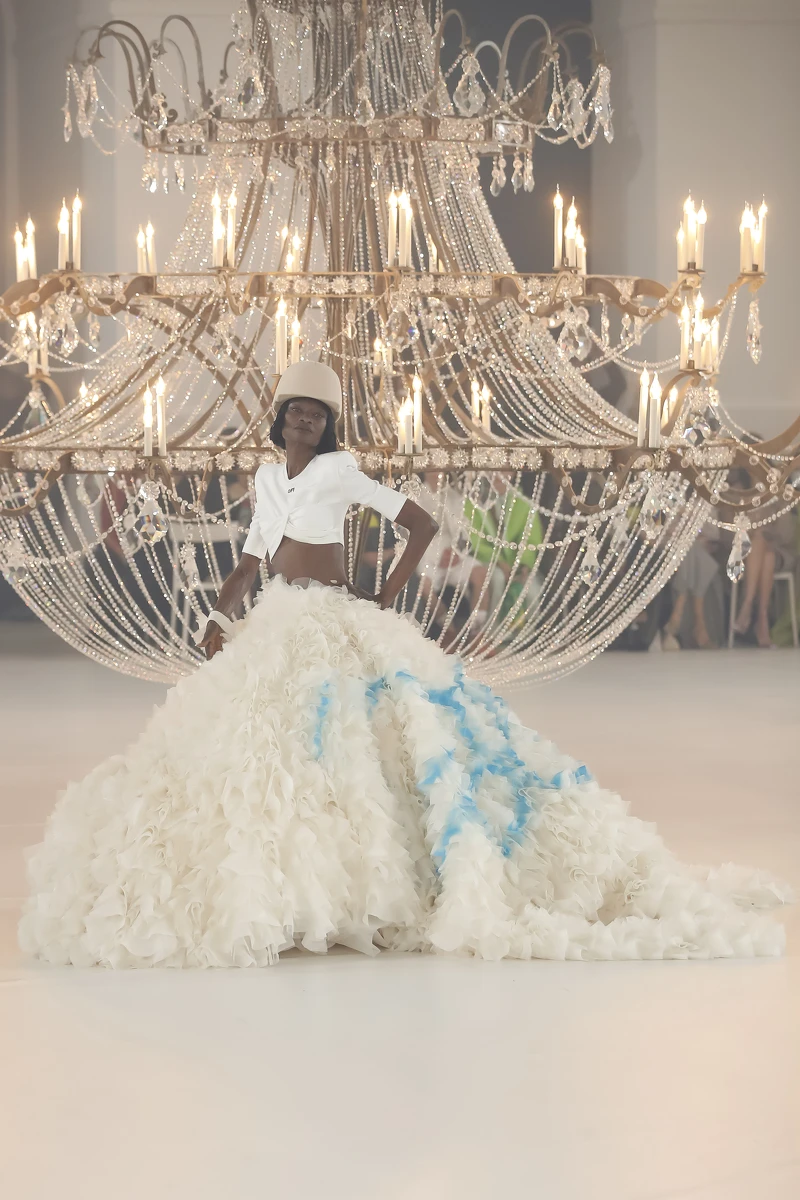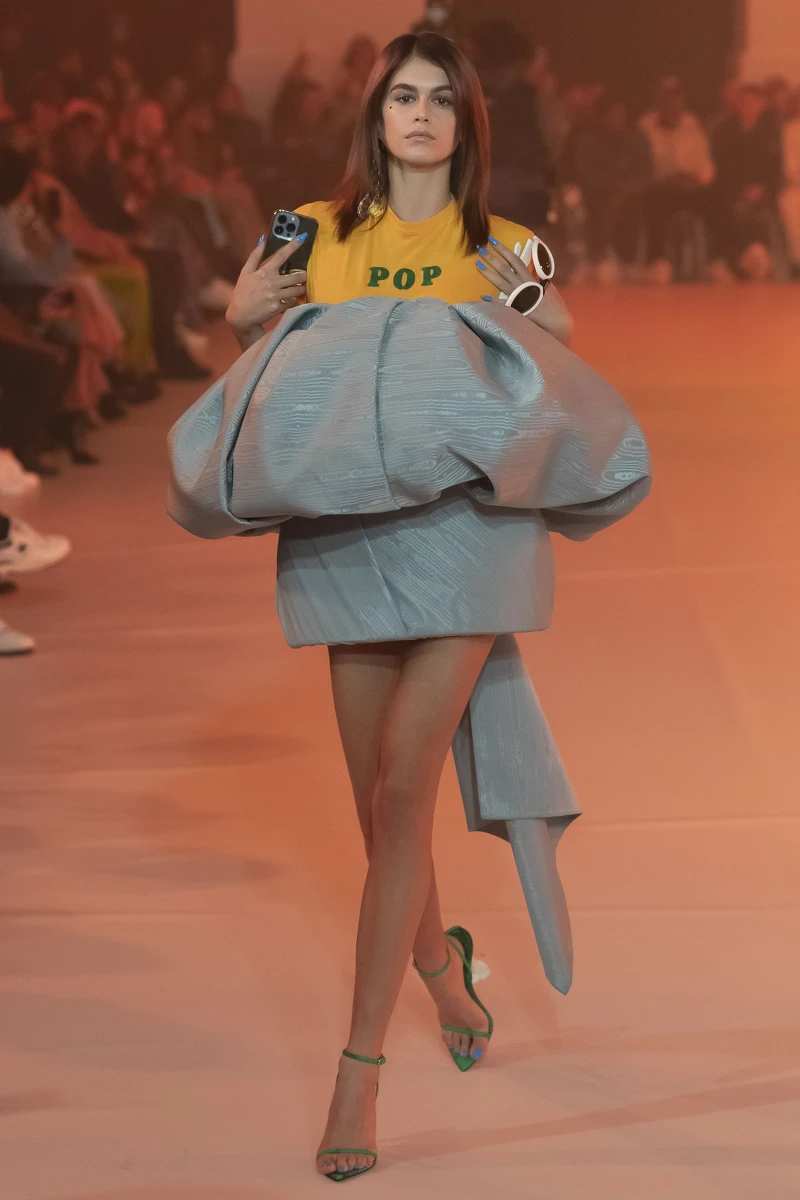 Off-White 2022秋冬大秀上最大的突破,是首度發表的高級訂製系列> Than a Bride,由穿著白色寬袖塔夫綢洋裝的Bella Hadid開場,共有28套華麗訂製服裝,上頭不乏Abloh生前最喜愛的顏色、事物,除了Bella還有Gigi Hadid、Karlie Kloss、Kendall Jenner和母女檔Cindy Crawford、Kaia Gerber,一個比一個大咖的超模陣容,成為精彩大秀的另一個看點。
