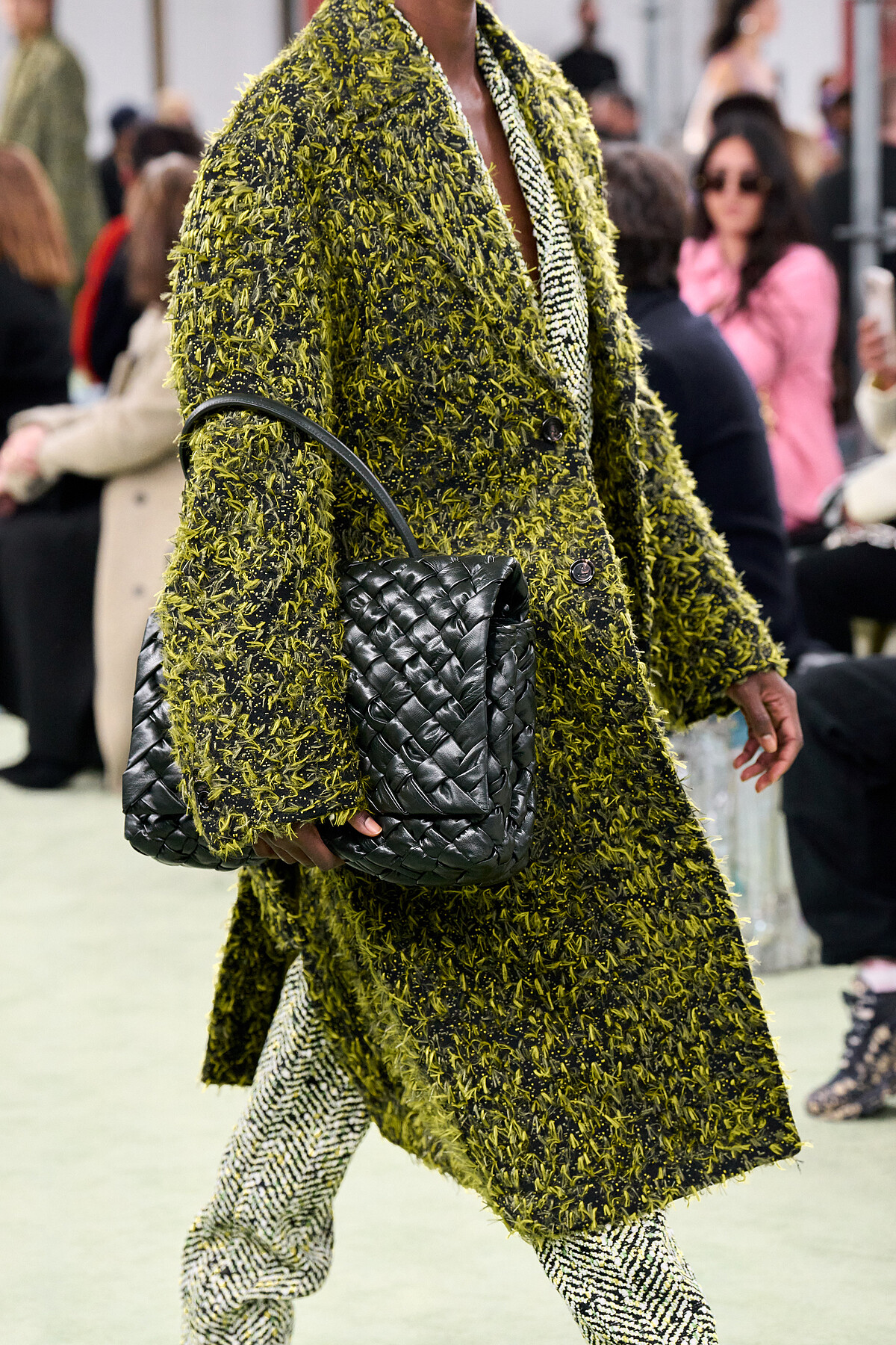 Matthieu Blazy 在新系列中,保留品牌精緻的皮革工藝,並增加了更多的時裝筆觸。在系列中你可以看見用「磨砂皮革」製作的仿丹寧長褲、同樣以磨砂皮革製作的男友襯衫,也可以看見標誌性的編織工藝(Intrecciato)在過膝長靴、包款上呈現。工藝感十足的襯衫和洋裝也是他為此次系列帶來的全新體驗。