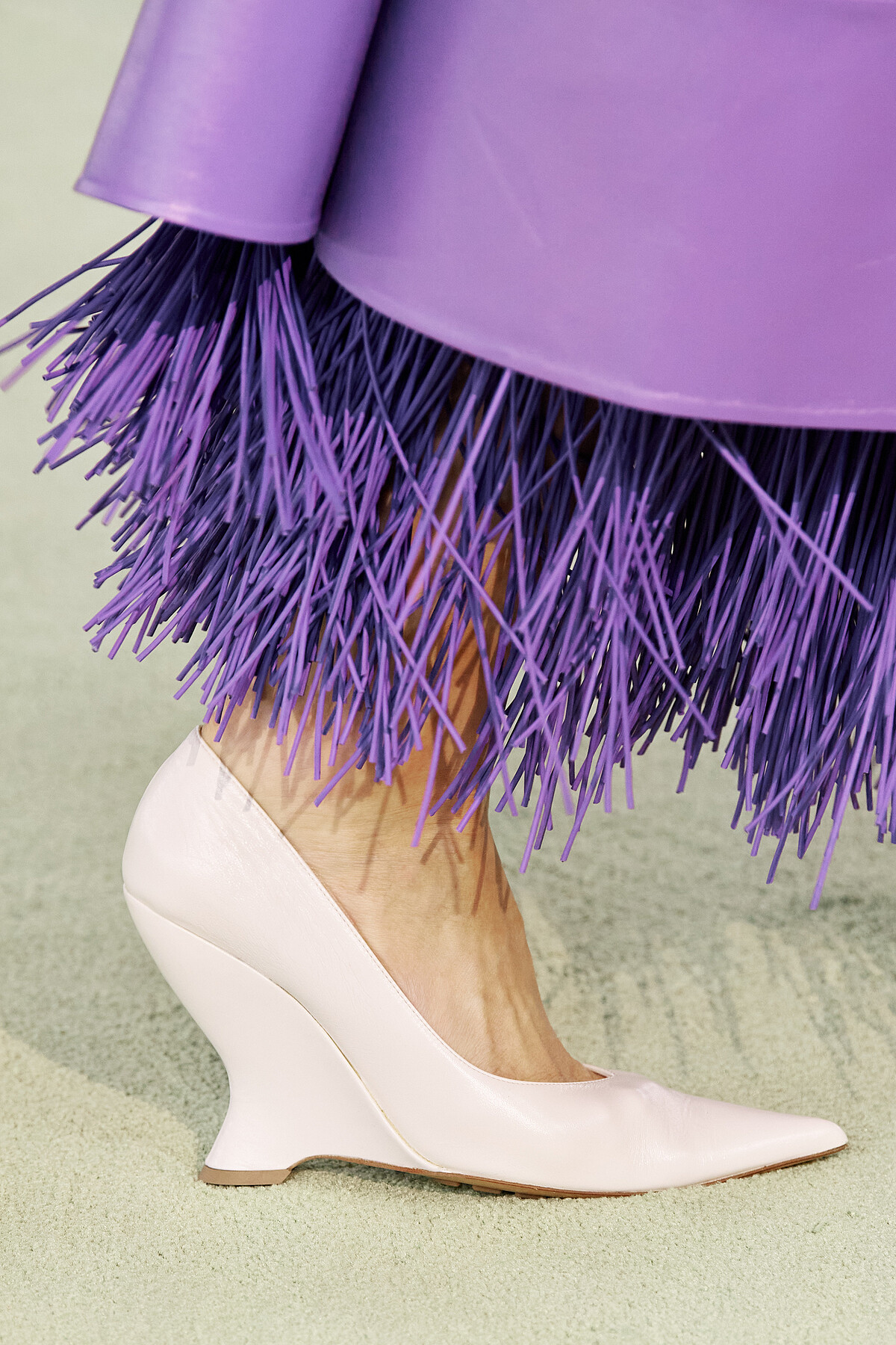 超高底的瑪莉珍鞋型能夠為造型增添分量與亮點,較前個設計師的玩味性,Matthieu Blazy 更多了分屬於女人的優雅與態度。