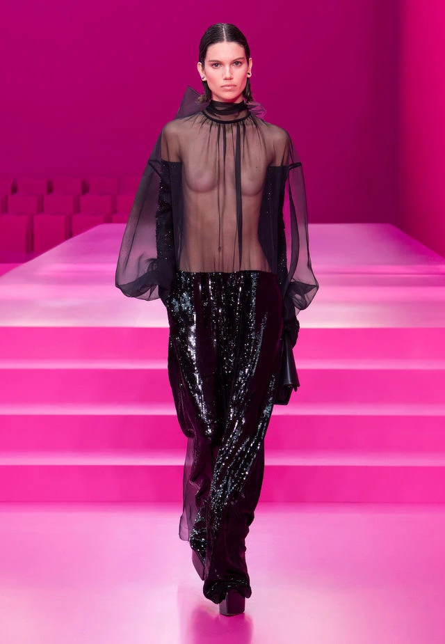 時裝發表會宛如設計師們的調色盤,藉由不同顏色的組合來變化出不一樣的風情與造型,Valentino 2022秋冬卻選擇以單一的粉紅色來作為全系列的主色調,在維持對於細節的前提下,展現粉紅色的52種個性,這就像是用同一種食材要做出數十道不同風味的料理,具相當的難度。然而,創意總監Pierpaolo Piccioli辦到了!