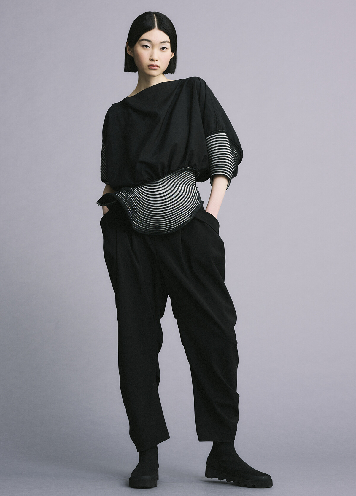 LAYER OVER:延續Issey Miyake多層次的穿搭重點,運用相互交疊布料所打造而成的服裝系列。