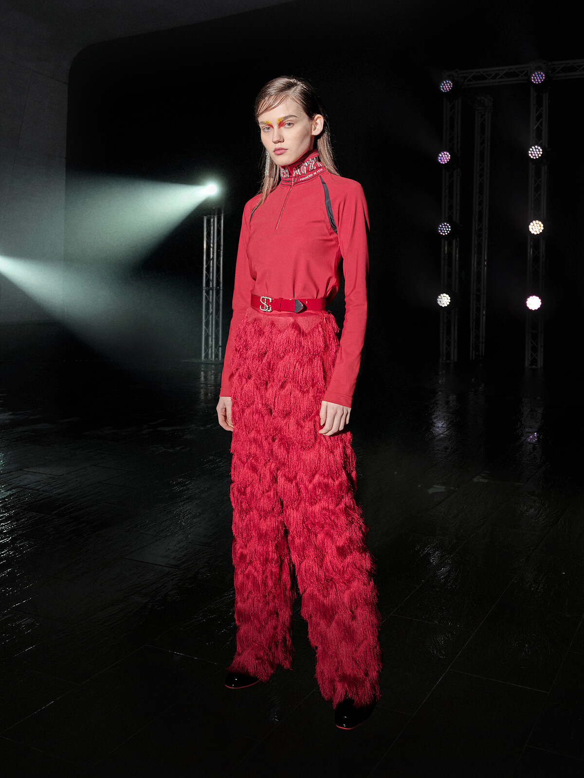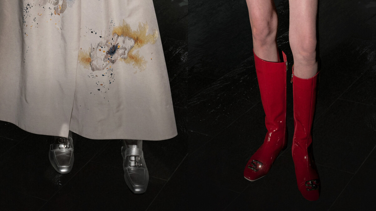 而在配件方面,包含放射狀的水晶耳環、波光粼粼的流蘇線條、亮色漆皮的樂福鞋與靴款⋯⋯全緊扣《光》的主題特性。