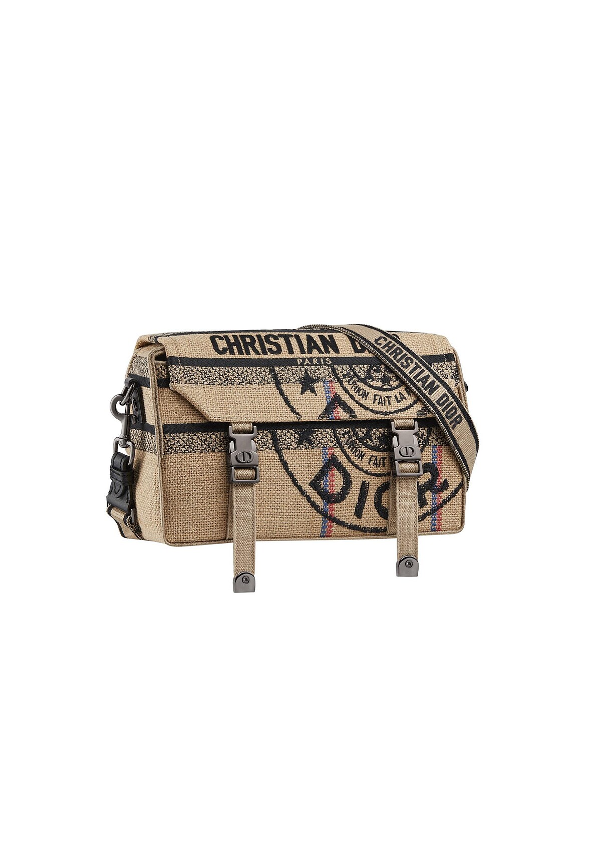 Maria Grazia Chiuri在秋季時節找回迪奧家族曾使用過的黃麻袋材質,重新設計袋上的logo樣式製成托特包、Camp郵差包、草編鞋等多種不一樣的配件。