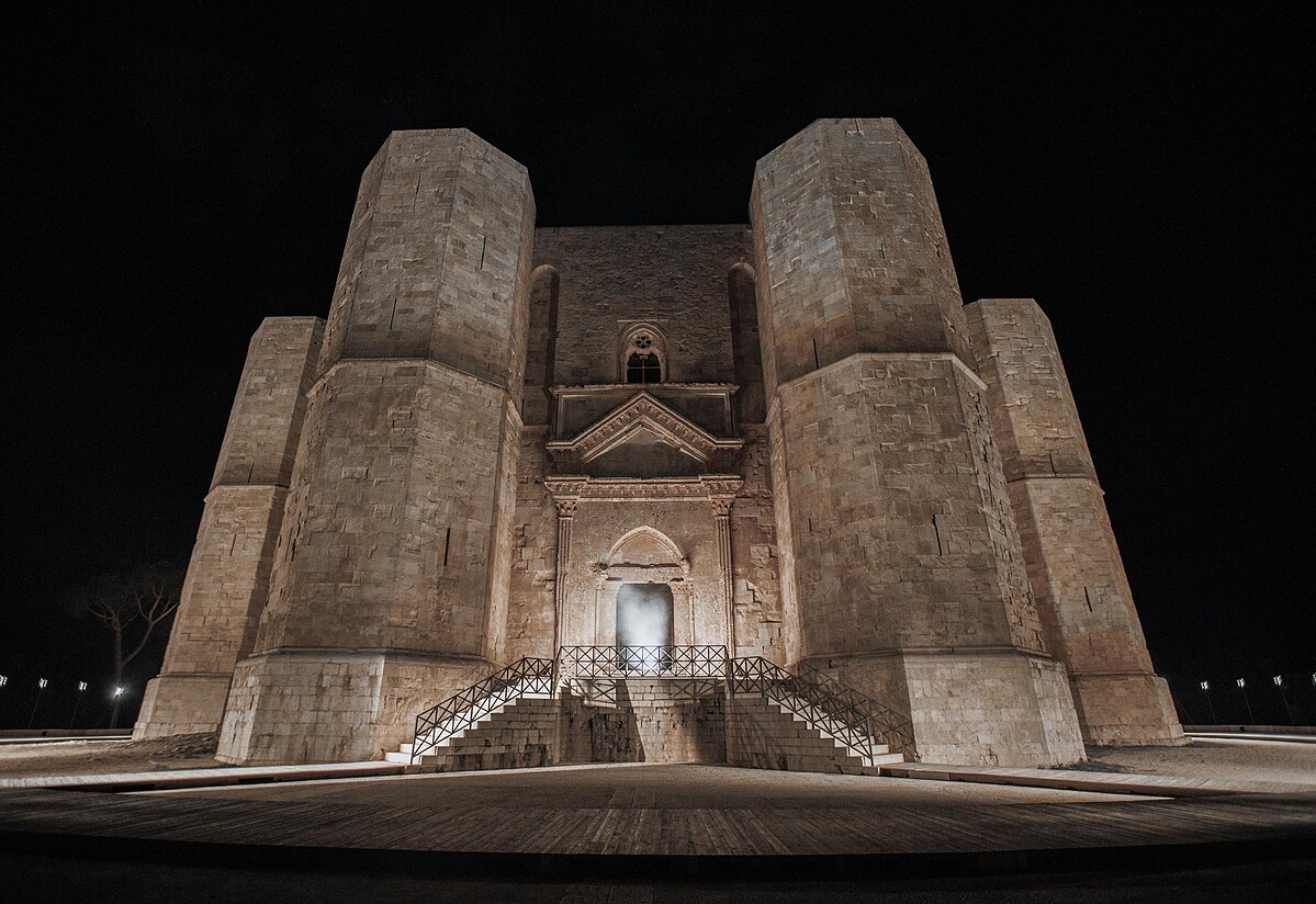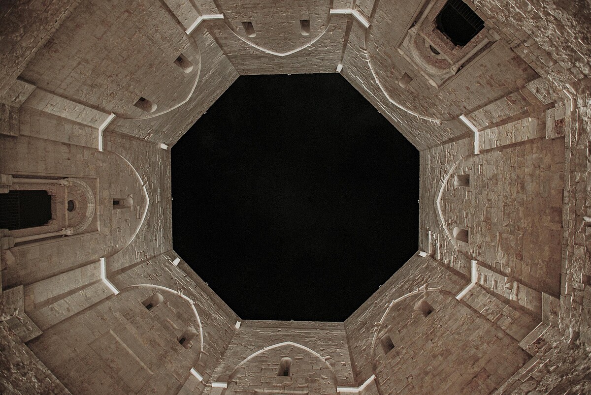 除了哲學,本次大秀的場地蒙特城堡(Castle del Monte)極其對稱以及和諧的幾何線條也深深影響了Alessandro Michele。Gucci Cosmogonie可以說是結合了藝術以及建築美學的一次創作。