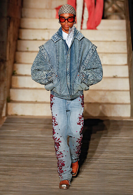 將星空化為服飾與配件的裝飾,本次秀上出現了大量的水鑽元素,Alessandro Michele挑戰將其放置在薄紗、丹寧、絲絨、緞面等不同的質料上。