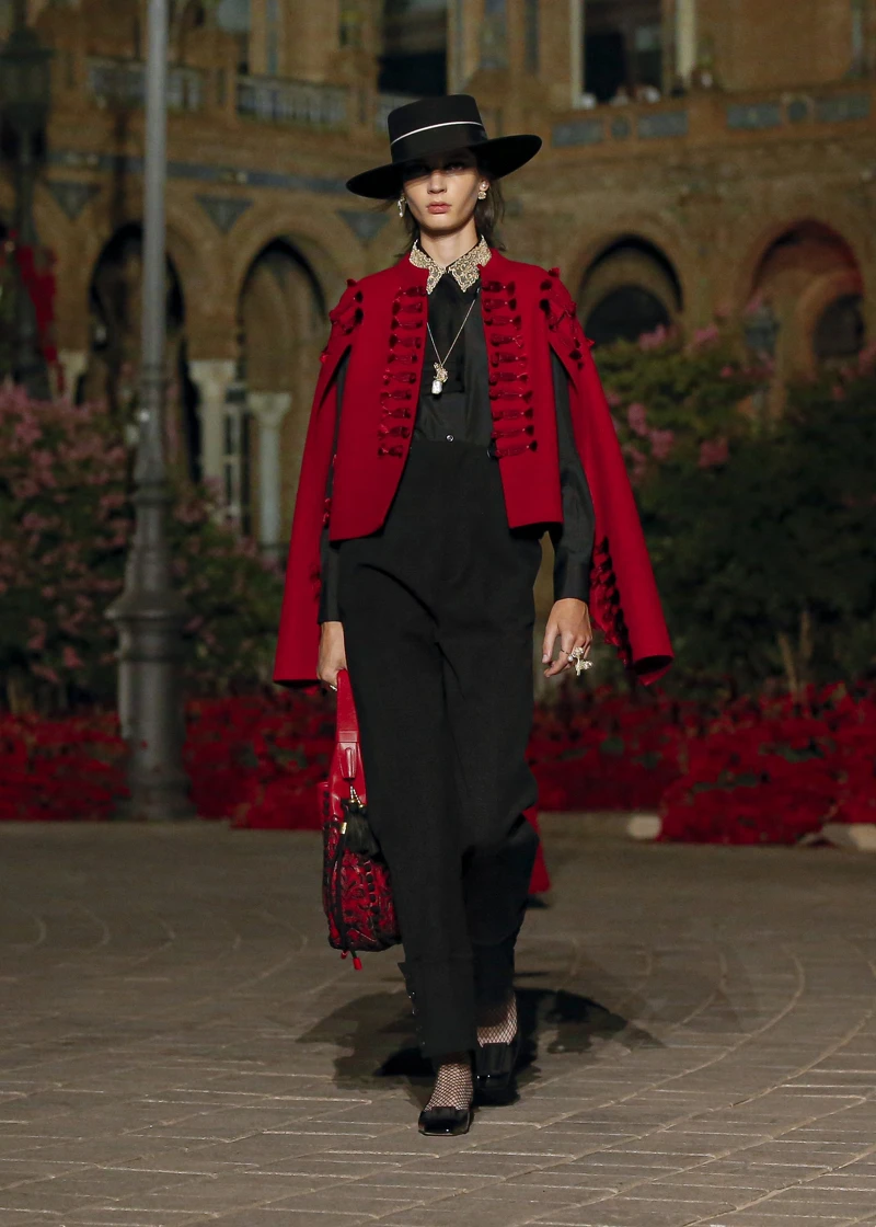除了卡門阿瑪雅,Maria Grazia Chiuri亦借鑿迪奧先生於1956年推出的Bal à Séville高級訂製禮服輪廓,並將2023早春發表會選址在西班牙廣場(Plaza de España),加乘宗教、表演藝術、文學等靈感,墜入一場西班牙文化之旅。
