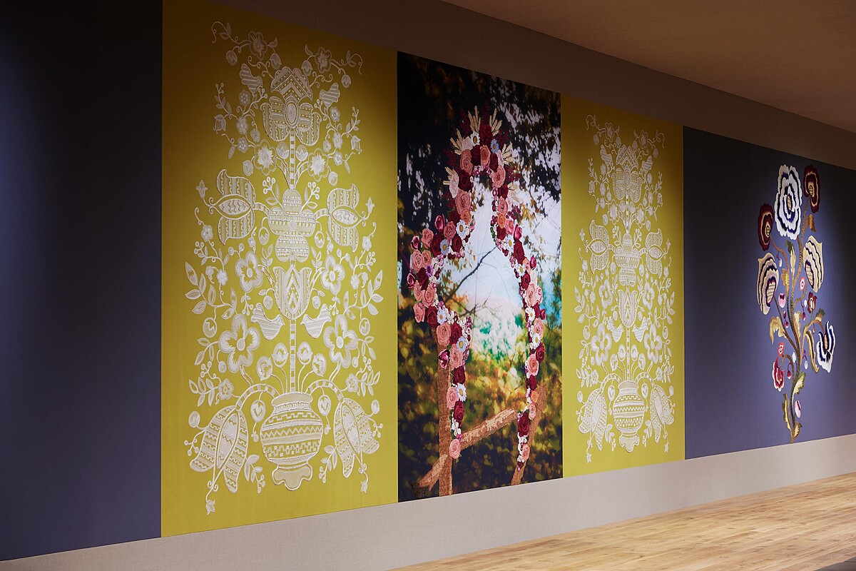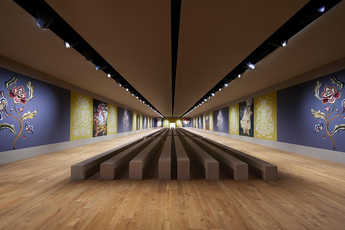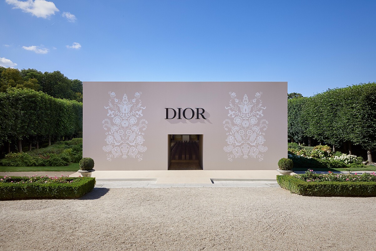 大秀選在Dior御用場地巴黎羅丹美術館舉辦,牆上的刺繡掛畫再次攜手印度孟買Chanakya工坊和Chanakya工藝學校合作,一針一線繡出烏克蘭藝術家Olesia Trofymenko的藝術作品,包括生命之樹、花卉圖案和大自然地域景致,就連秀場外牆上,也有生命之樹的蹤影。