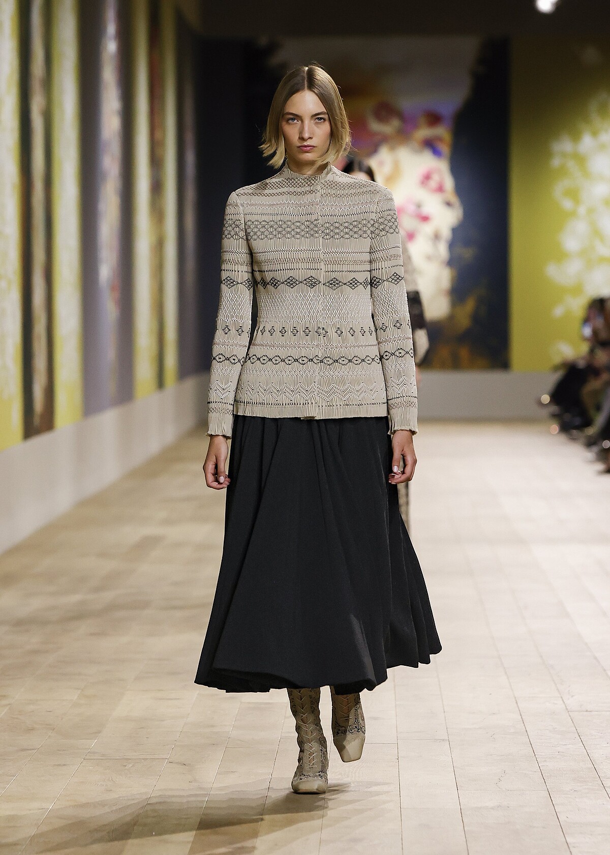 大秀重心圍繞著烏克蘭藝術家Olesia Trofymenko的作品《生命之樹》,連結宇宙萬物、天地空間,充滿生生不息的神祕力量,就如同探索不完的藝術領域,設計永無止盡的高級訂製服世界,Maria Grazia Chiuri將《生命之樹》的樹枝、樹幹、樹根化為紗線交織成華麗的刺繡,體現Dior以高級訂製服起家的品牌精神。