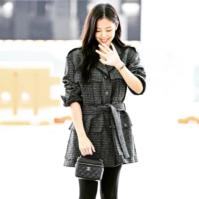 或將與緋聞前男友GD同場出席同場Chanel 2023春夏大秀,Jennie也在週末之際搭上前往巴黎的班機。進入10月,雖然現在的台灣還在30多度的高溫天氣,不過,韓國和歐洲都已漸進入宜人的秋分氣溫,因此Jennie選擇的是2022秋冬系列裡一件灰黑格紋相見的斜紋軟呢短版大衣,率性地將袖子捲起並以一件貼身的皮褲與之搭配,穿出香奈兒的獨立與搖滾個性。