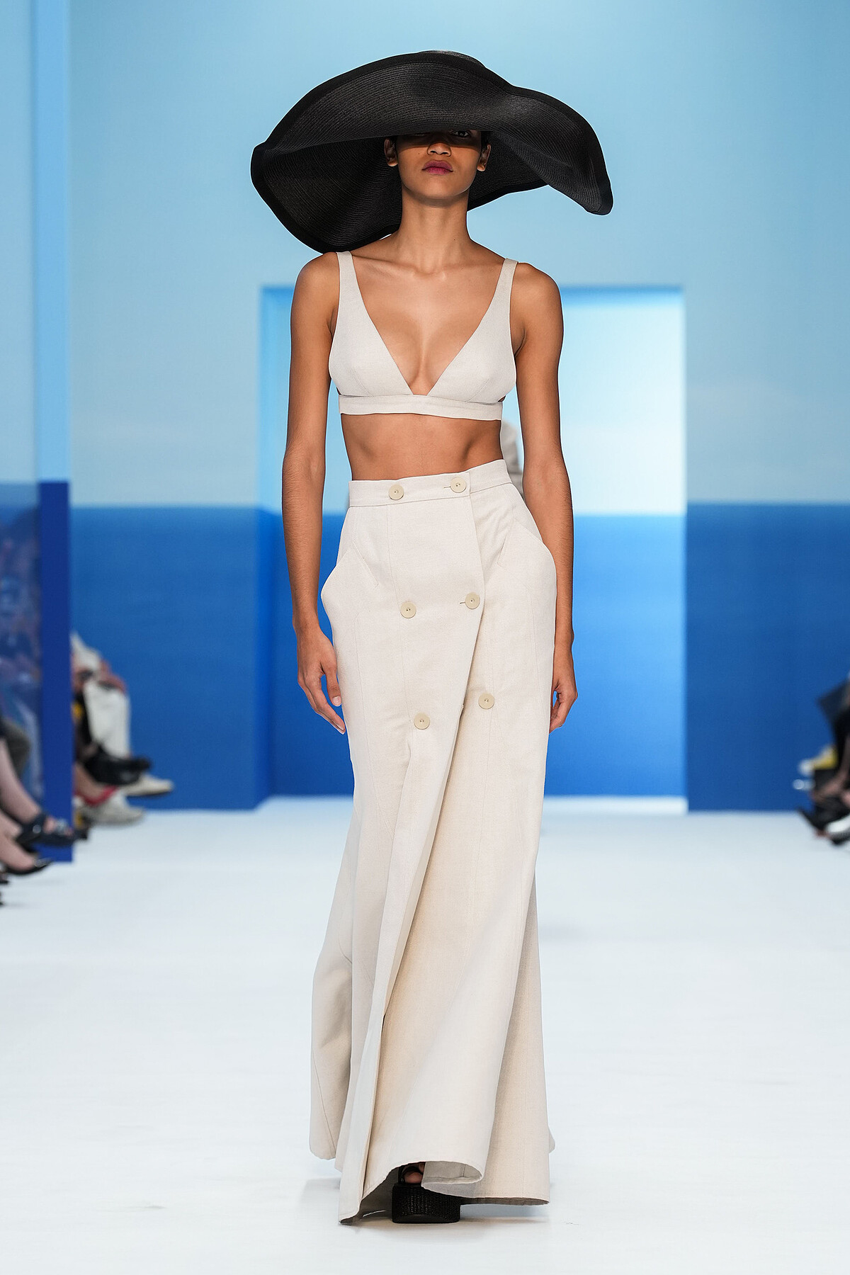 Renée Perle,是攝影師Jacques Henri Lartigue鏡頭前的愛人與繆思,Griffiths將她令人憧憬的氣質相繼重現在湛藍舞台之上——緊身、短版針織背心,搭配寬鬆又柔軟的高腰水手褲(或之其變形)。