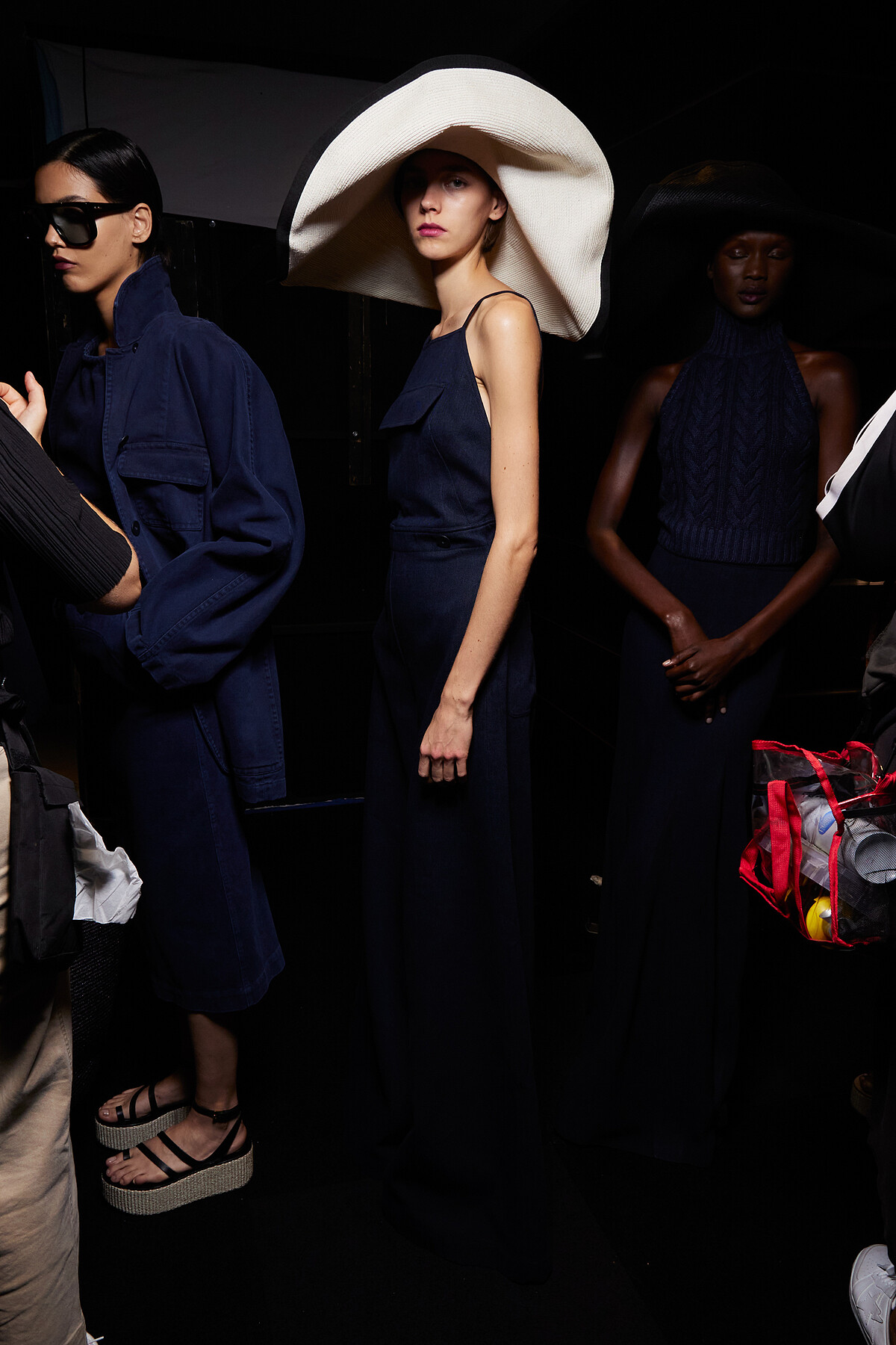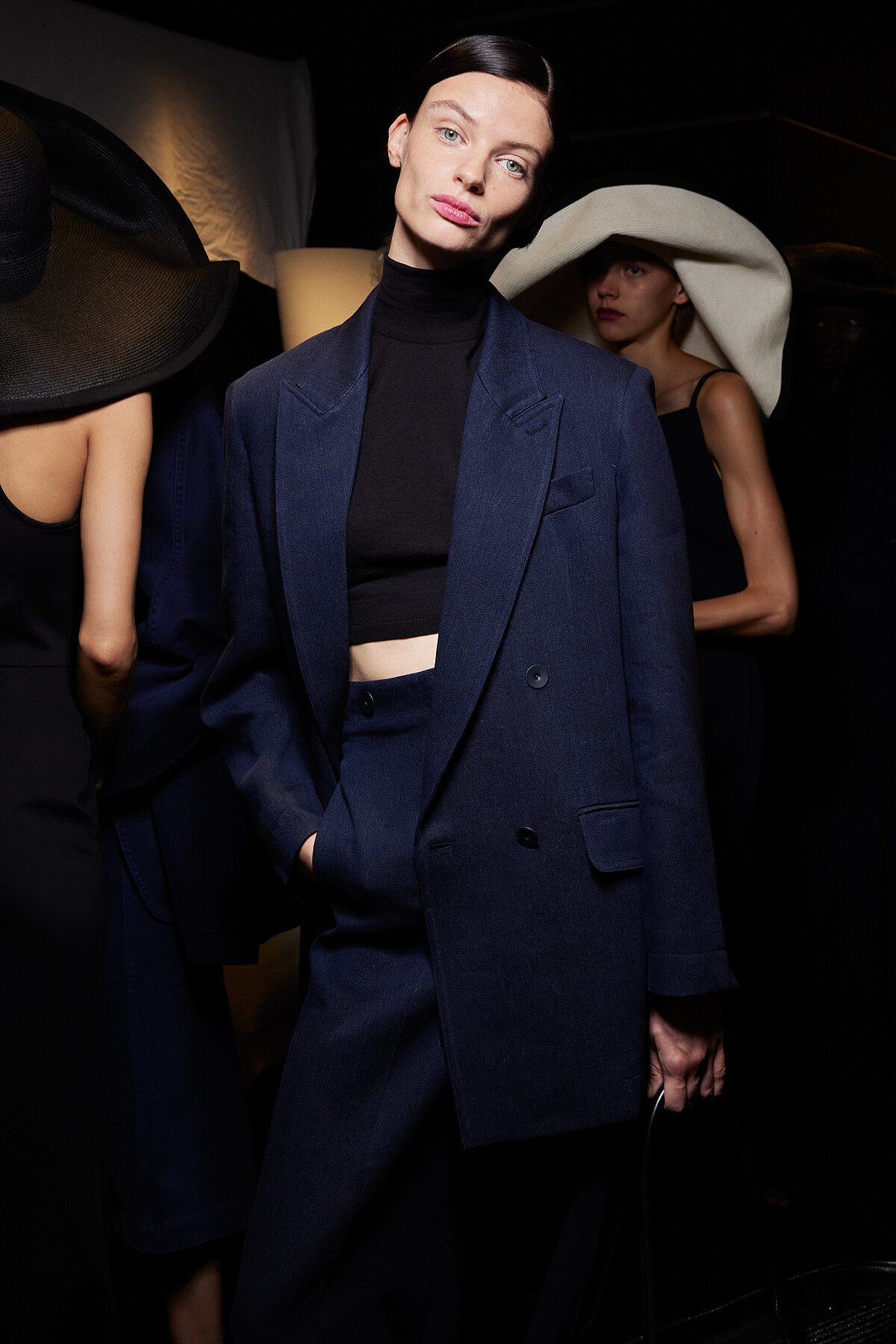 除此之外,如墨的深藍色套裝、水洗棉長版工裝外套的登場,也讓人不難捕捉到Eileen Gray的影子就穿梭在秀場當中。