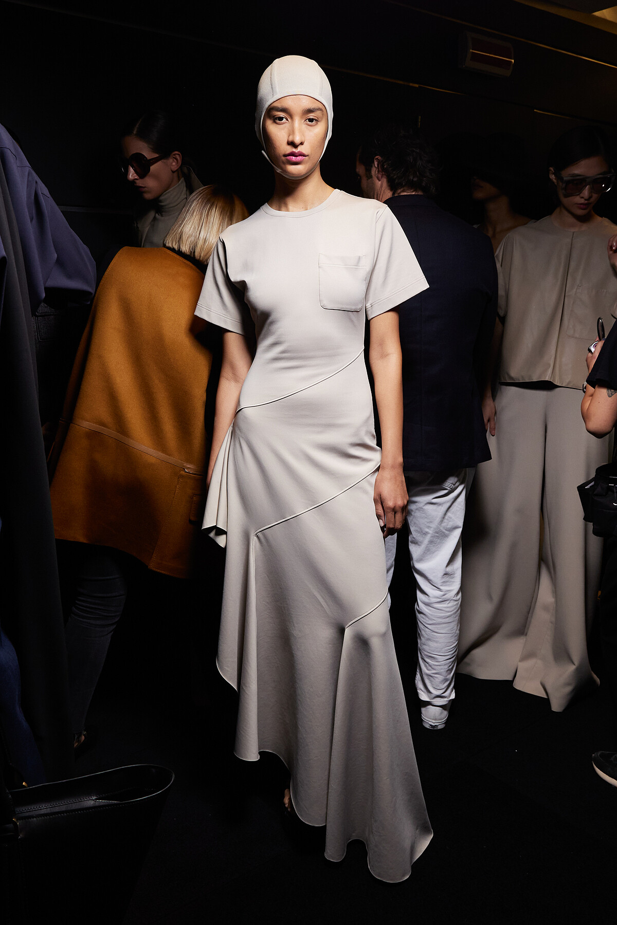 Griffiths運用現代主義建築家Eileen Gray的設計觀點,把曲線剪裁設計作為設計主軸,讓服裝自帶曲面,行進間具有十足觀賞性!