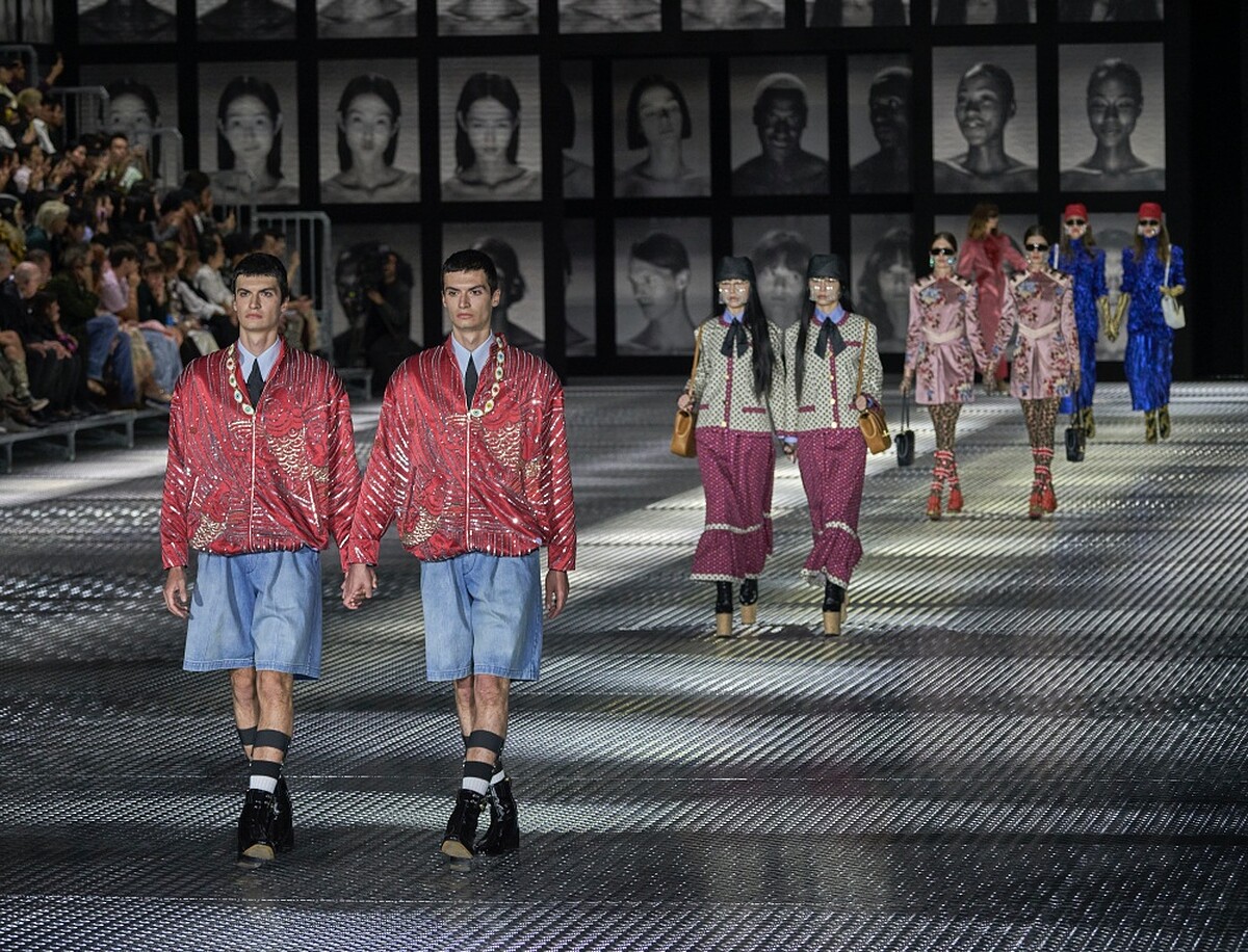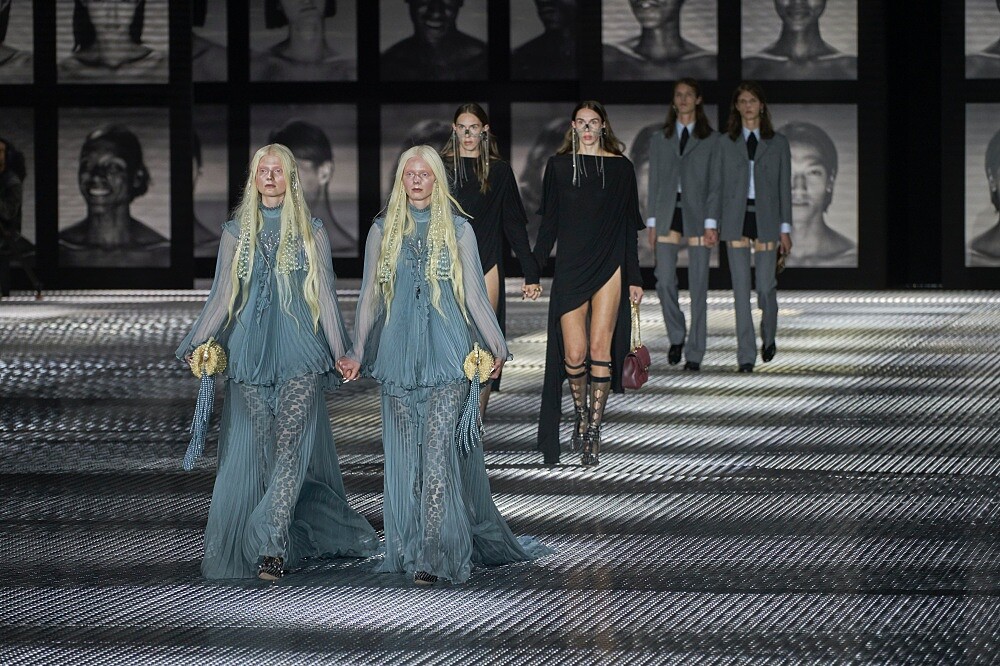 本季創意總監Alessandro Michele從雙胞胎母親Eralda、Giuliana身上獲得靈感,她們雖然有著同樣的外表,卻擁有截然不同的特質,於是,Alessandro Michele大費周章找來68對雙胞胎擔任模特兒,從左右兩側出場後、手牽手走秀,有人驚呼、有人讚嘆,但更多的是對母親和阿姨的愛,透過讓人意想不到的方式所呈現而引發的感動。