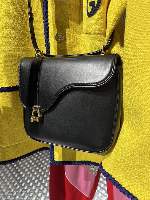 創意總監Alessandro Michele重新演繹典藏資料庫中1981年誕生的馬鞍包款,以素色皮革、拼接色系、GG Logo打造而成。