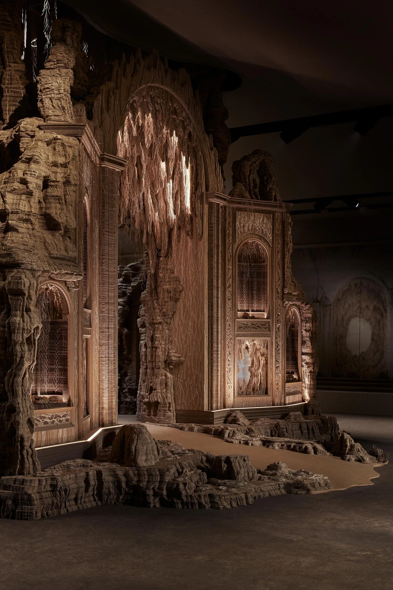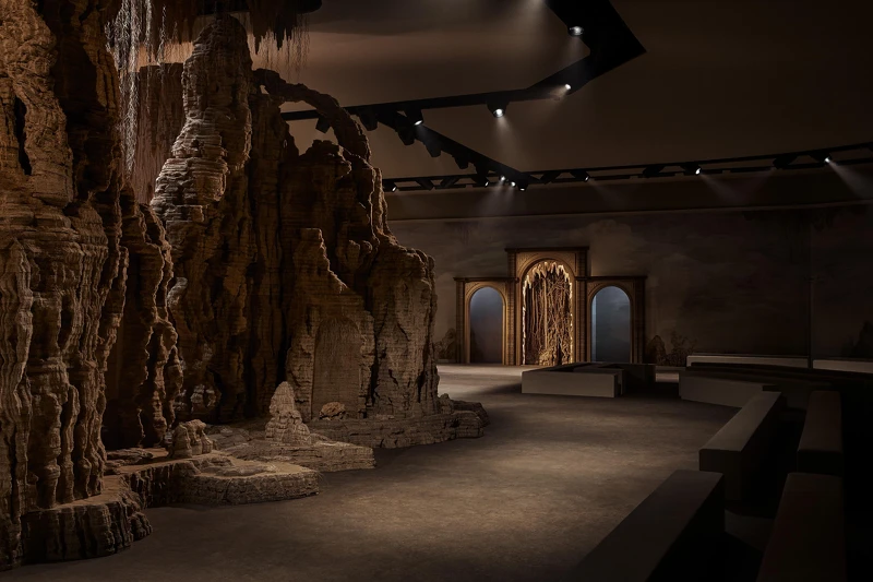 Dior 2023大秀現場,映入眼簾的一座宛如鐘乳石洞的巨型裝置,這也是取經Catherine de Medici王后生前託人打造的杜樂麗花園(Jardin des Tuileries),希望能帶給觀秀者置身於自然之中的既視感。