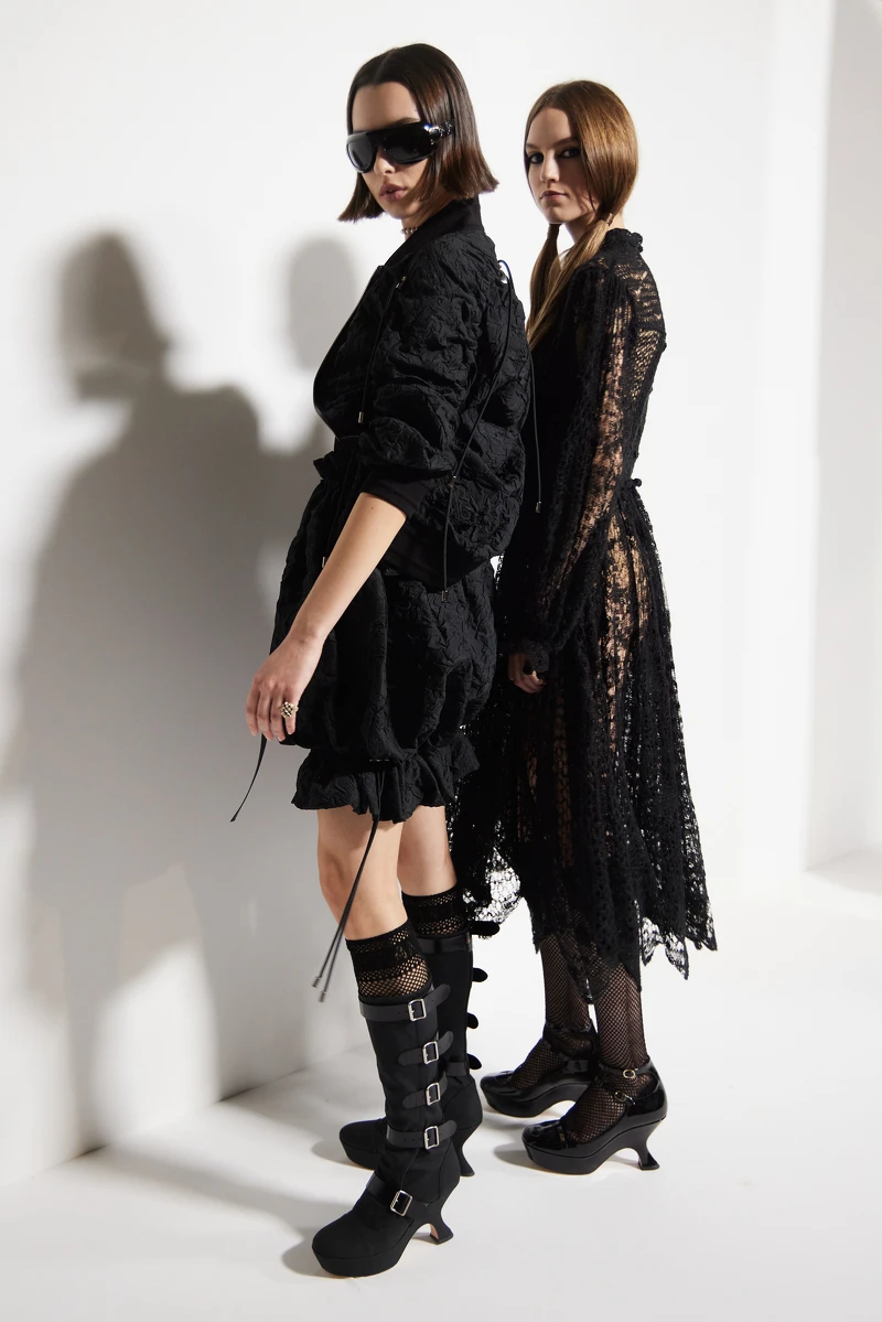 歷史給Catherine de Medici王后「黑色傳奇」這樣的封號,因此黑白兩色成為Dior 2023春夏的兩大主角。Maria Grazia Chiuri以Dior的語言重新詮釋16世紀的宮廷風格,大量的蕾絲、剛硬的立體裙擺、及其費時的刺繡工藝⋯⋯盡顯華麗。