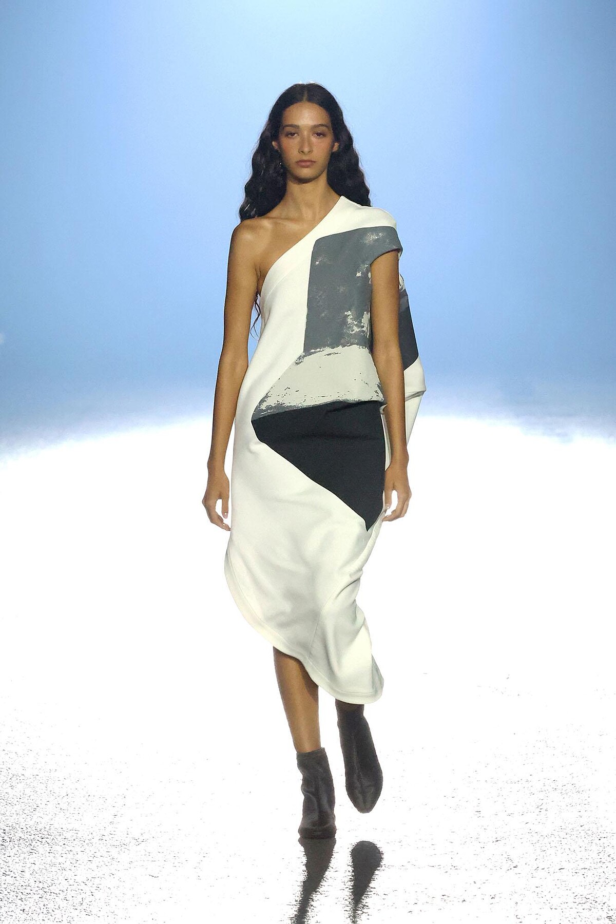 打頭陣出場的Torso,也是本季的主角系列。藉由黑白兩色的極簡調性,希望讓目光聚焦在服裝的輪廓上。而Torso Juxtapose比較特別的是,服裝上的印花,是由黏土藝術品轉印而來的圖樣,有著一點手作的溫暖。