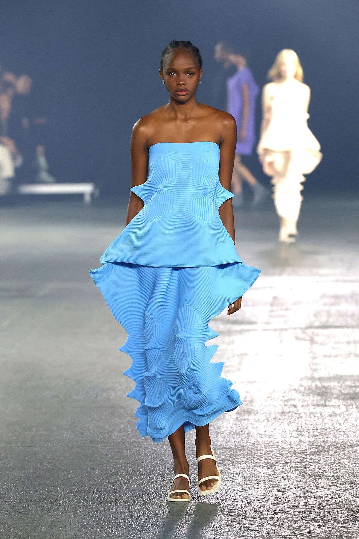 立體度十足的波浪線條,整件洋裝完全沒有任何縫線與接縫,考驗一體成型的高超工藝。