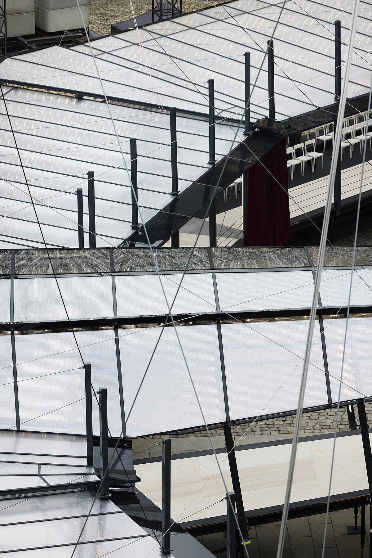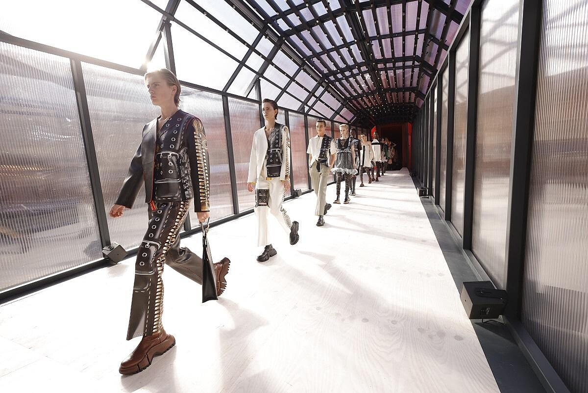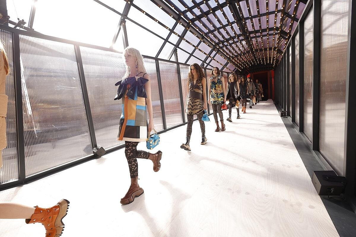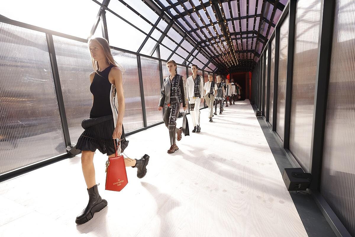 回歸秀場靈感,本次路易威登2023春夏女裝系列設置於盧浮宮中央廣場 (Louvre Cour Carrée),這場大秀同時也是女裝創意總監Nicolas Ghesquiére「全權委託」視覺藝術家菲利普·帕雷諾 (Philippe Parreno)與美術製作指導詹姆斯·欽倫 (James Chinlund)共同構思和設計,展現如馬戲團般的趣味視覺。