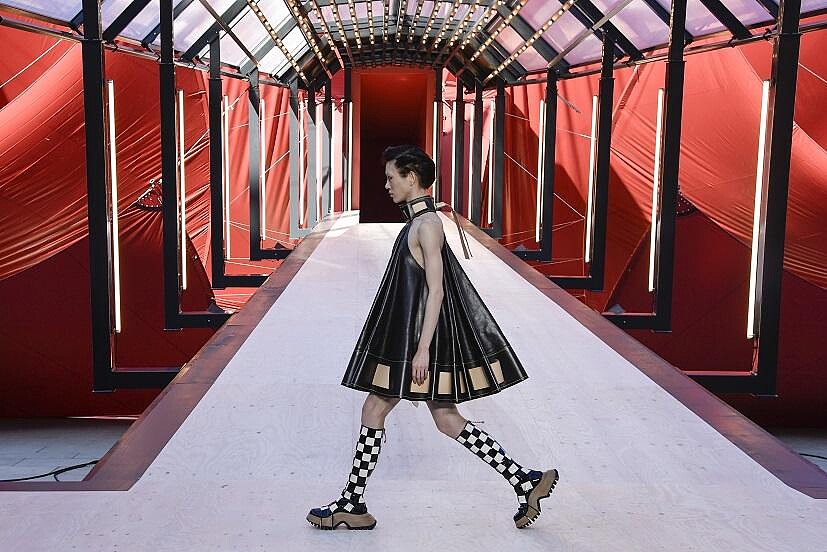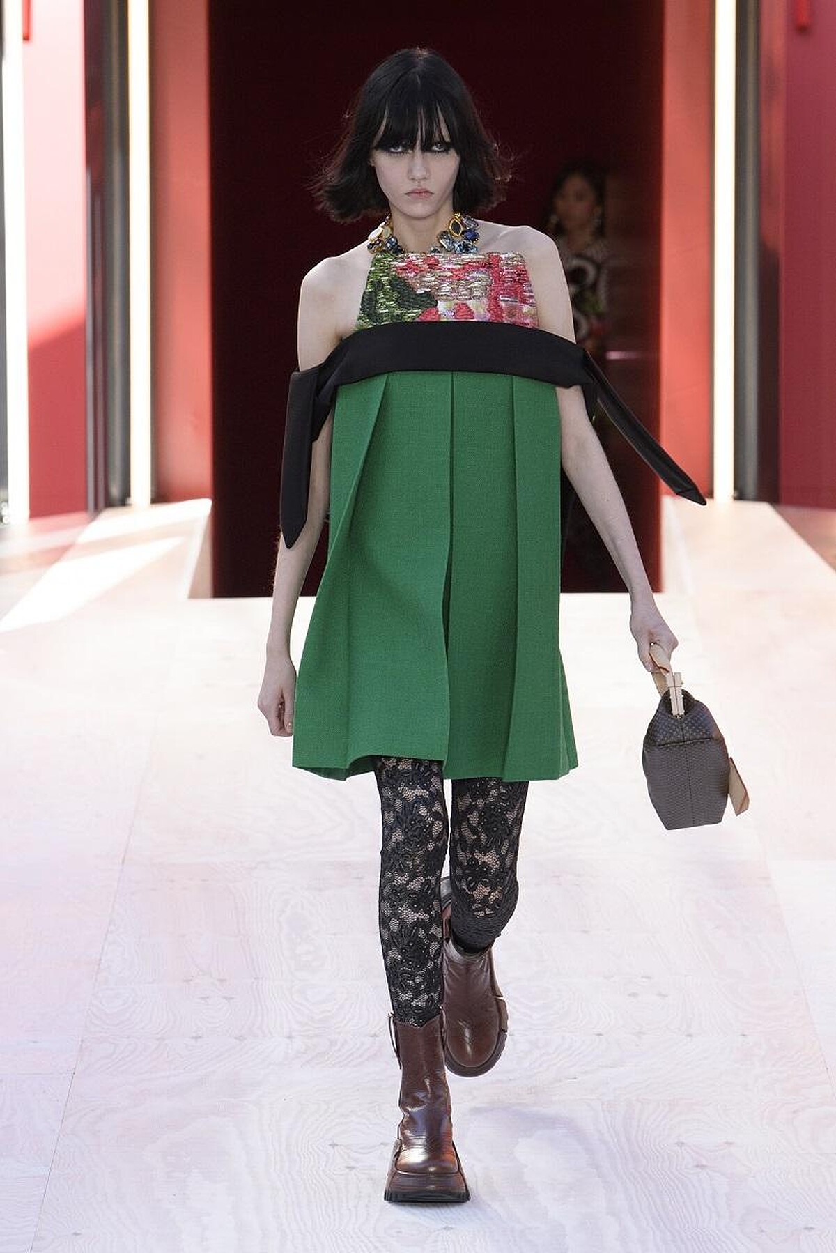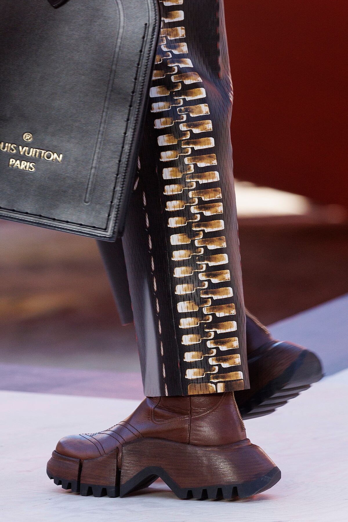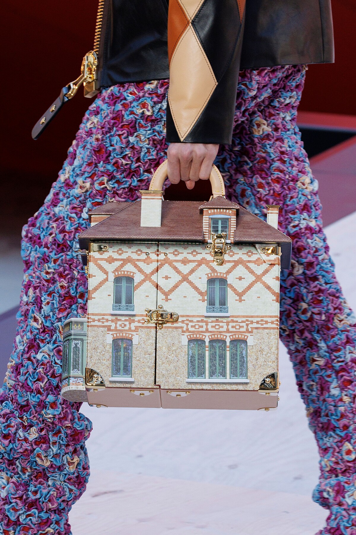 圍繞巨大與細微,經典的路易威登拉鍊、鎖頭及腰帶等配件如誇張戲劇般的形式呈現,帶有超現實的娃娃屋手袋也成為秀上亮點。