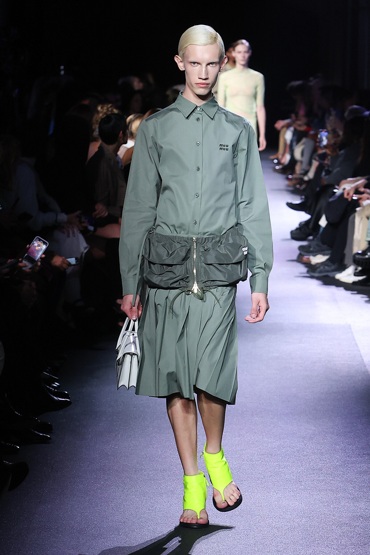 Miu Miu 2023春夏作為巴黎時裝週壓軸,有點像是餐後最後端上的水果,輕鬆而不膩——棉質的層次洋裝、機能性的尼龍面料運用⋯⋯一切都相當貼近你我的日常衣著,在米白、淺灰、卡其等顏色的詮釋下更顯順眼。