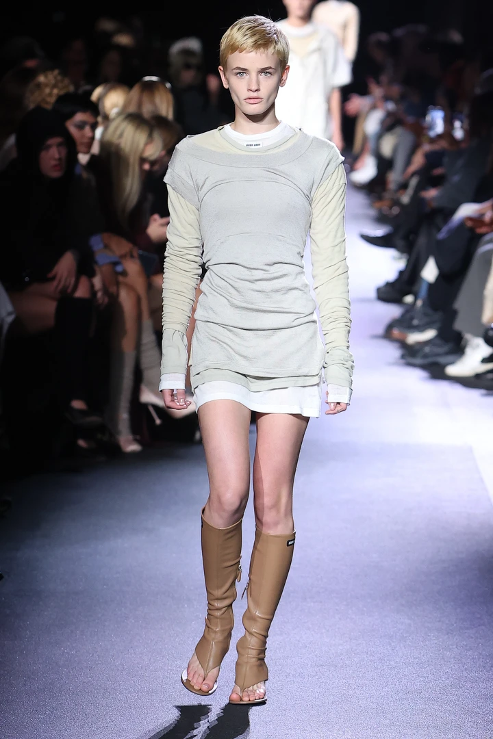 Miu Miu 2023春夏作為巴黎時裝週壓軸,有點像是餐後最後端上的水果,輕鬆而不膩——棉質的層次洋裝、機能性的尼龍面料運用⋯⋯一切都相當貼近你我的日常衣著,在米白、淺灰、卡其等顏色的詮釋下更顯順眼。