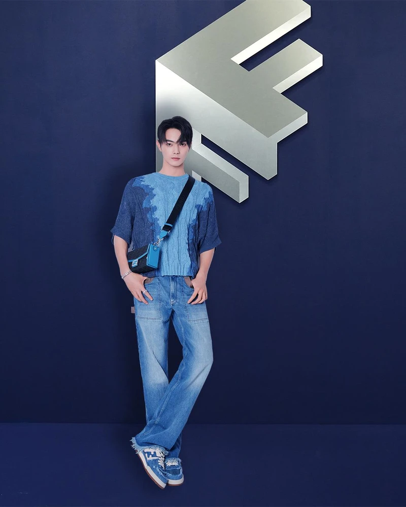 同樣是數位化參與Fendi 2023秋冬男裝秀的許凱,以鮮明藍色針織上衣搭配牛仔長褲,展現青春、活力又帥氣的一面。