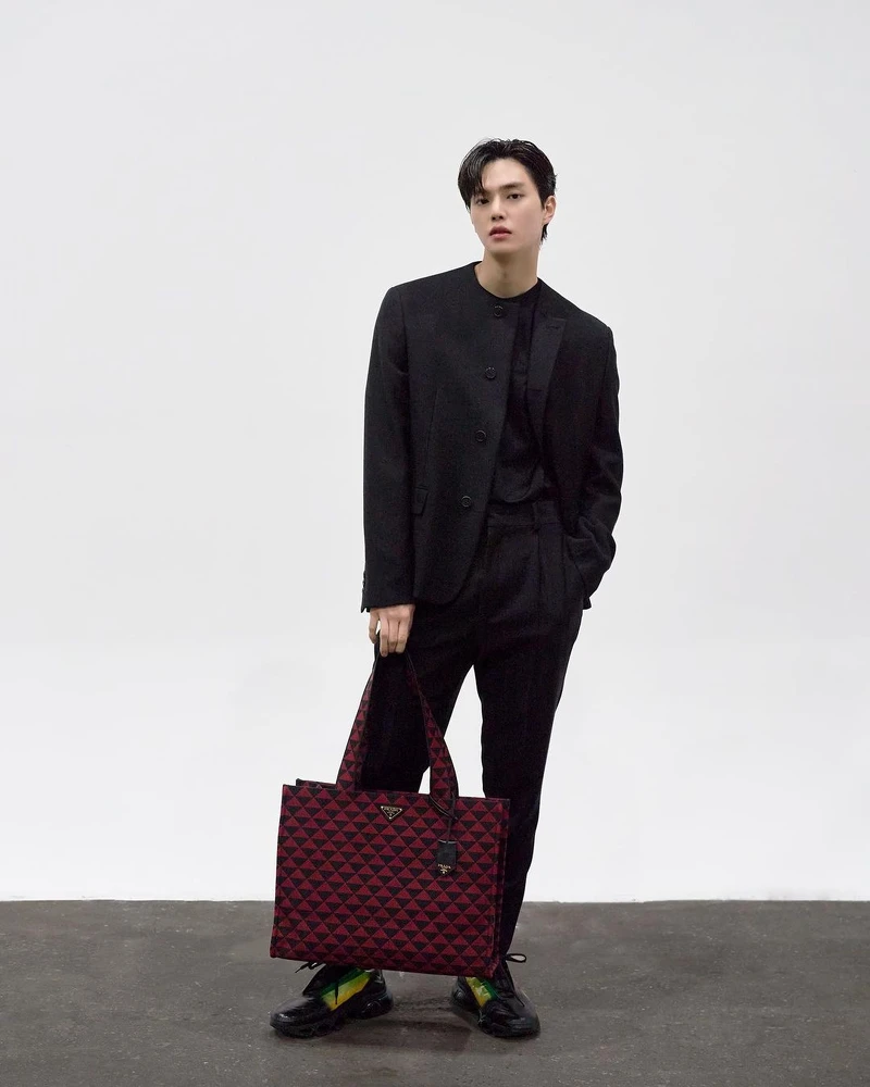身為Prada品牌摯友的韓劇新男神宋江,雖然沒有飛到現場看秀,但他以黑色上衣、西裝長褲,搭配圓領夾克為Prada男裝秀拍攝形象圖,並呼籲粉絲一起欣賞精彩大秀。