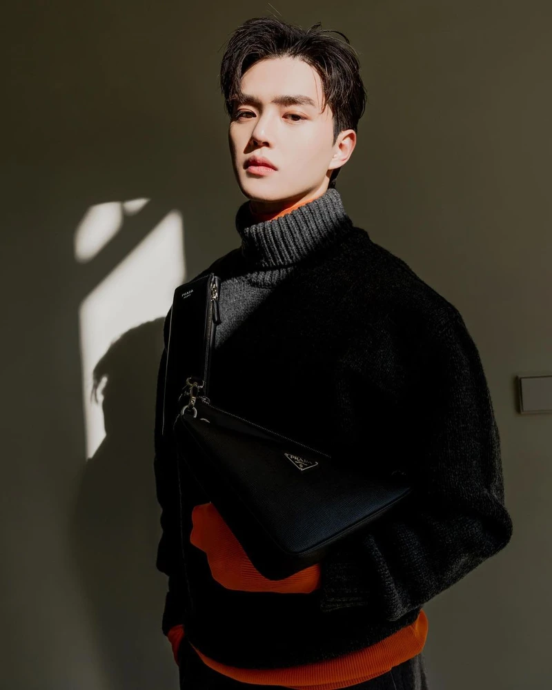 Gucci品牌大使Exo Kai攜帶Gucci年度主打商品Gucci GG帆布行李硬箱、GG帆布手提包的時髦配件,準備前往男裝週,參加Gucci 2023秋冬男裝秀。到了Gucci秀場,Kai以藍色襯衫搭配深色格紋正裝帥氣亮相。