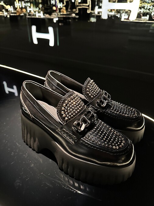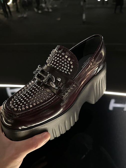 舒適的製鞋工藝一向是Hogan的強項,無論是球鞋還是靴子都以標誌性的「H」圖案貫穿,為現代時髦男女提供兼具實用與造型的風格單品。在本季,設計師更跳脫以往框架,添入前衛音樂元素,將龐克文化融入單品設計中。比如鉚釘細節與樂福鞋型,都能為造型帶來率性與個性。