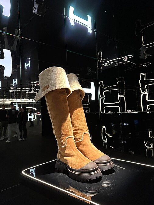 服裝的系列重點聯繫了鞋款等配件,在保有品牌經典中,將當代美學結合音樂性融入創作,標誌性的「H」圖案勾勒出系列主軸,高級材質的運用與講究的幾何剪裁互相結合,呈現實穿卻深具個性的當代時髦裝束。