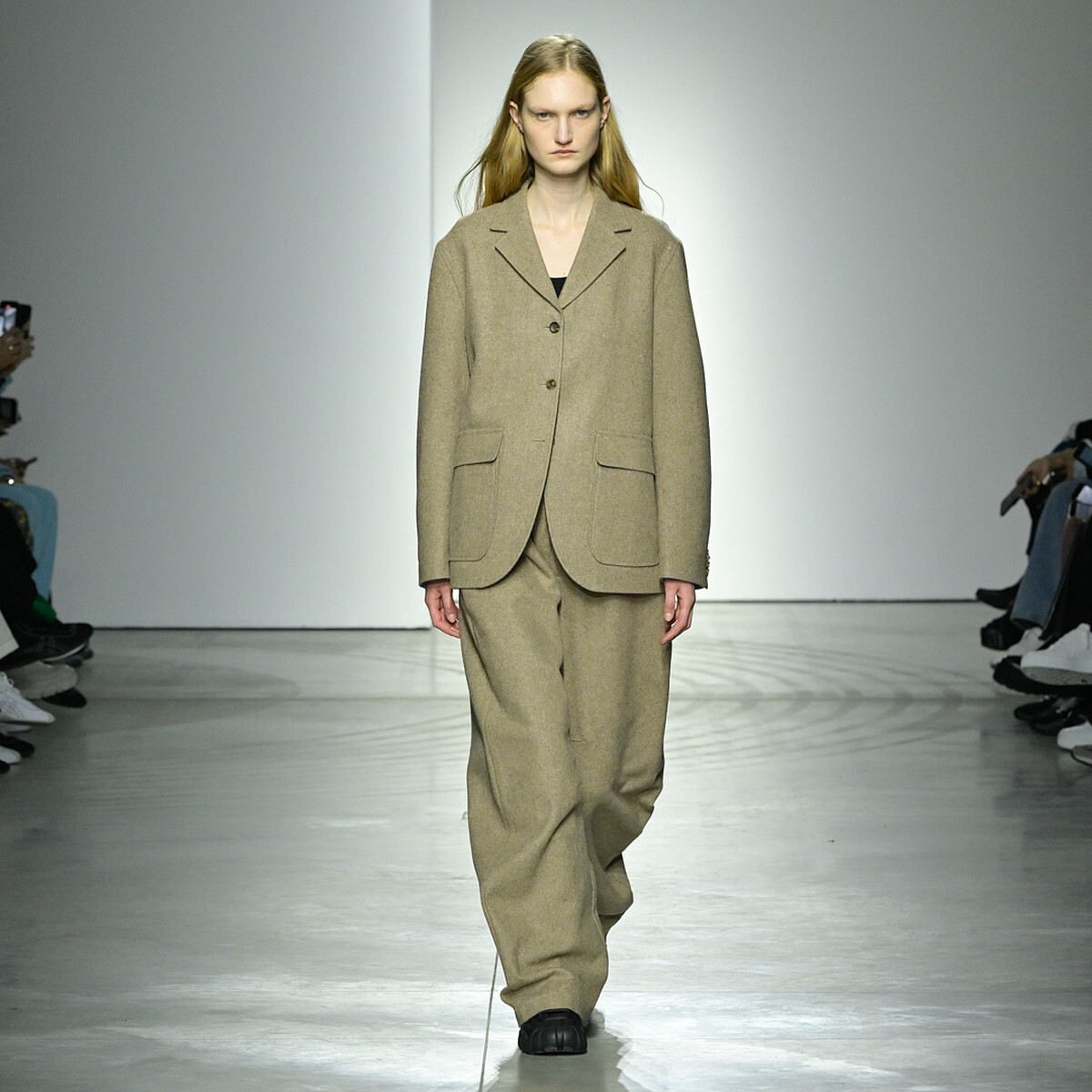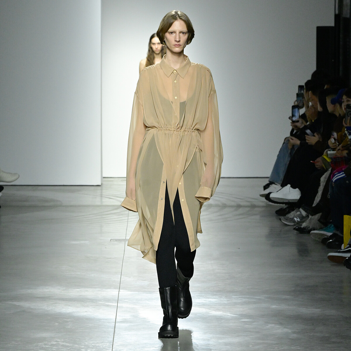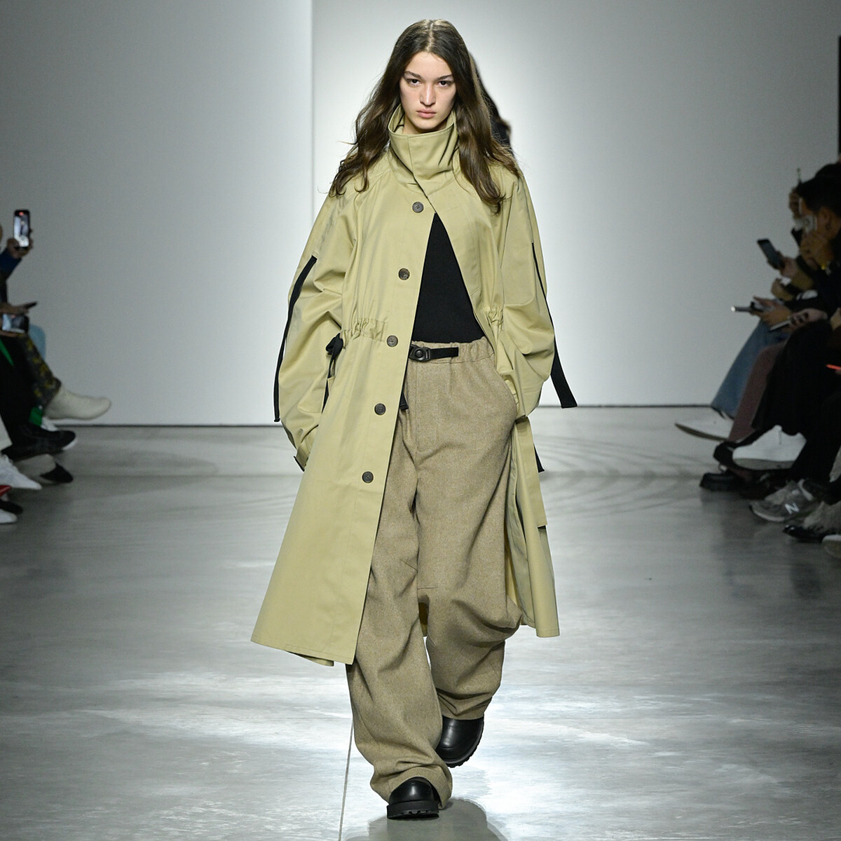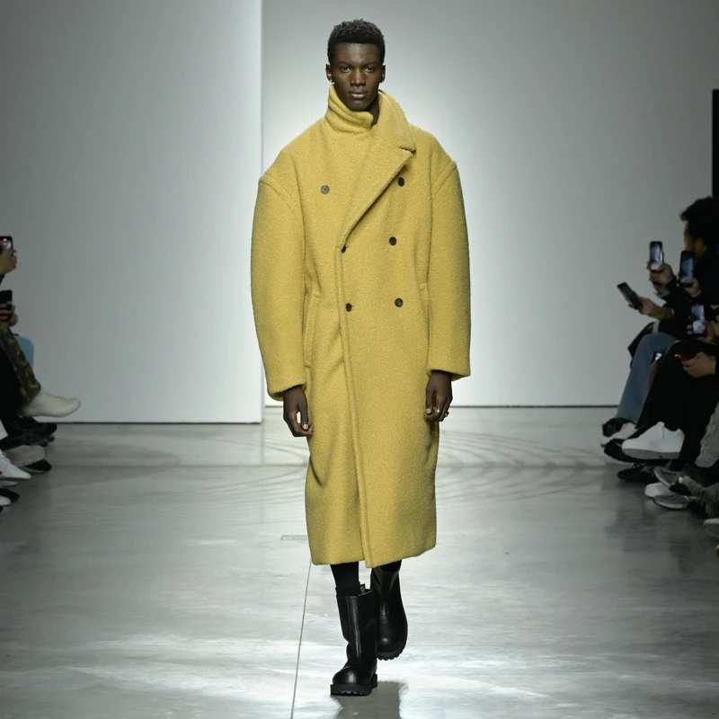 值得注意的焦點,寬鬆剪裁中有著流線式剪裁讓整體廓型更為優雅細膩,設計師在這些傳統細節中注入都會面貌,保有中性特質,無論男女都能在實用性與造型感間取得平衡,將都市美學融入風格之中。