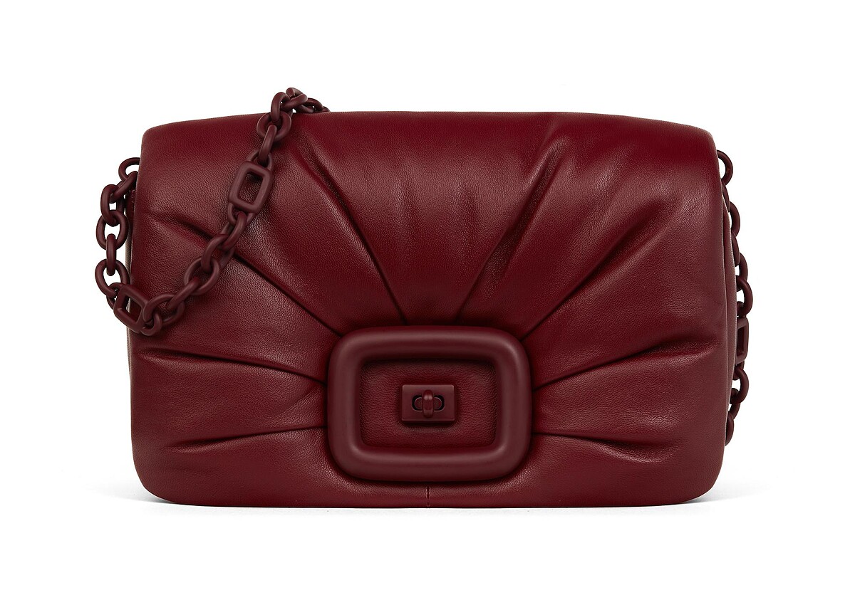 Roger Vivier方釦包2023秋冬全新設計「Viv' Choc Me」,有別以往的金屬方釦,Viv' Choc Me的方釦和鏈帶採和包包皮革同一顏色的one tone設計,低調之餘又富饒奢華感。