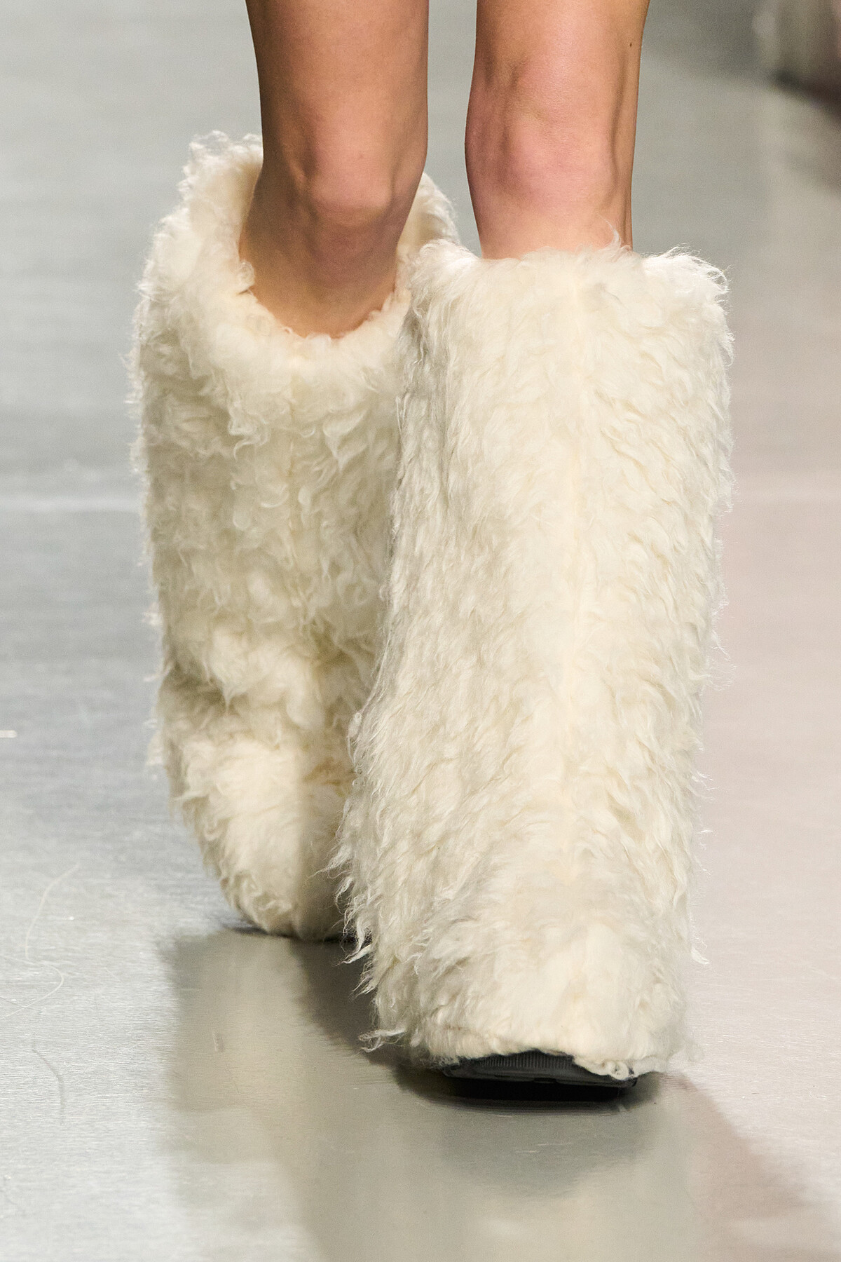 除了前面所說的泰迪熊雪靴,本季秀上還有其他必須關注的配件,包含超高跟厚底皮靴、偌大的logo腰封扣等。品牌更把印花製成超大布包,外出小旅行好裝之餘,極為亮眼的花色為日常穿搭打造多彩亮點。