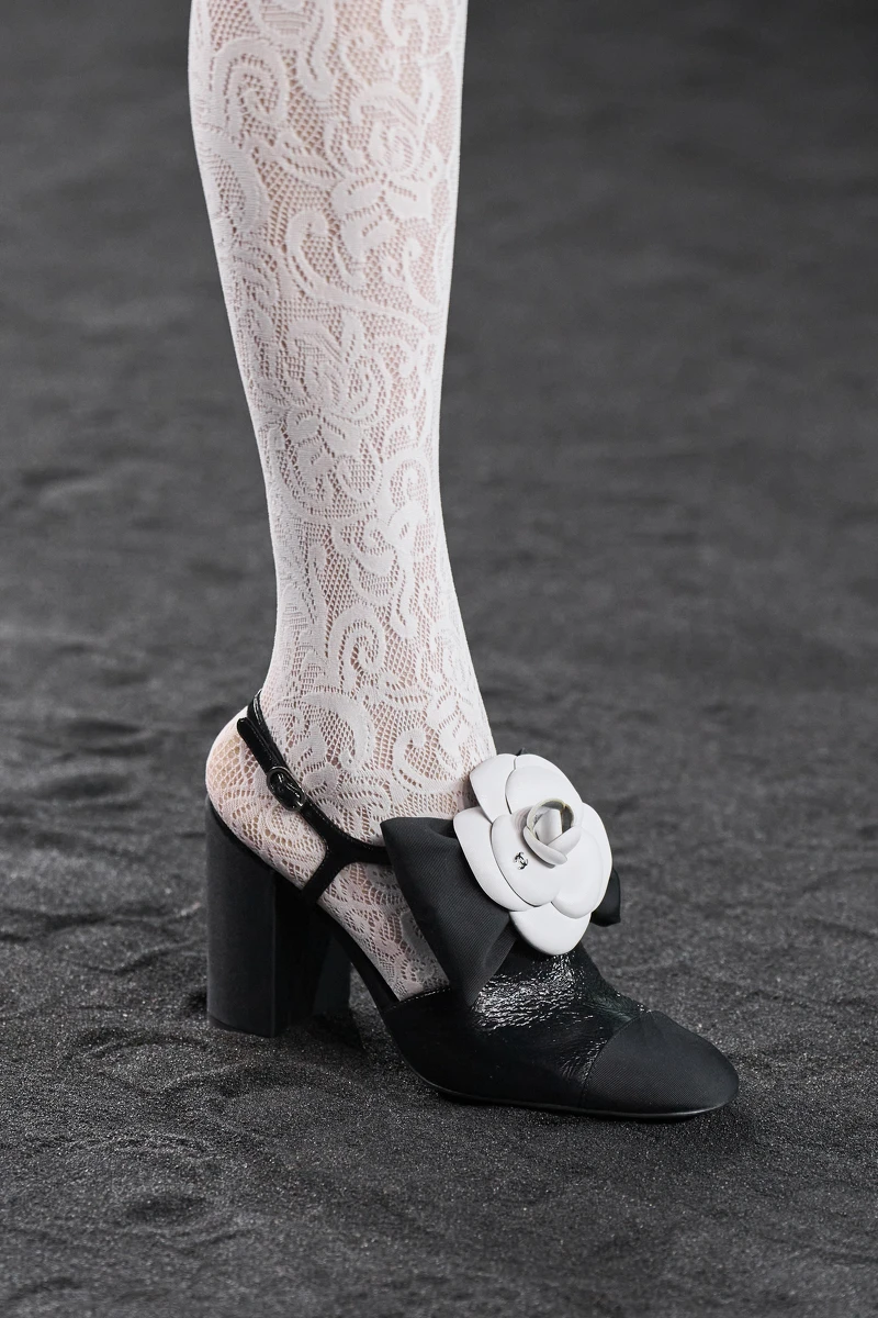 「對香奈兒而言,山茶花不只是創作主題,而是永恆經典的符碼。」對Chanel歷史再熟悉不過的維吉妮·維婭(Virginie Viard)認為山茶花對她而言是一種安心的熟悉感,於是將山茶花柔軟又強韌的特質延伸至設計上,以冬日綻放的山茶花為概念,從整片印花圖紋到口袋、外套、鈕扣處的點綴,甚至是髮飾、手套、鞋履、包包上的裝飾細節,都可以看見山茶花的優美姿態。