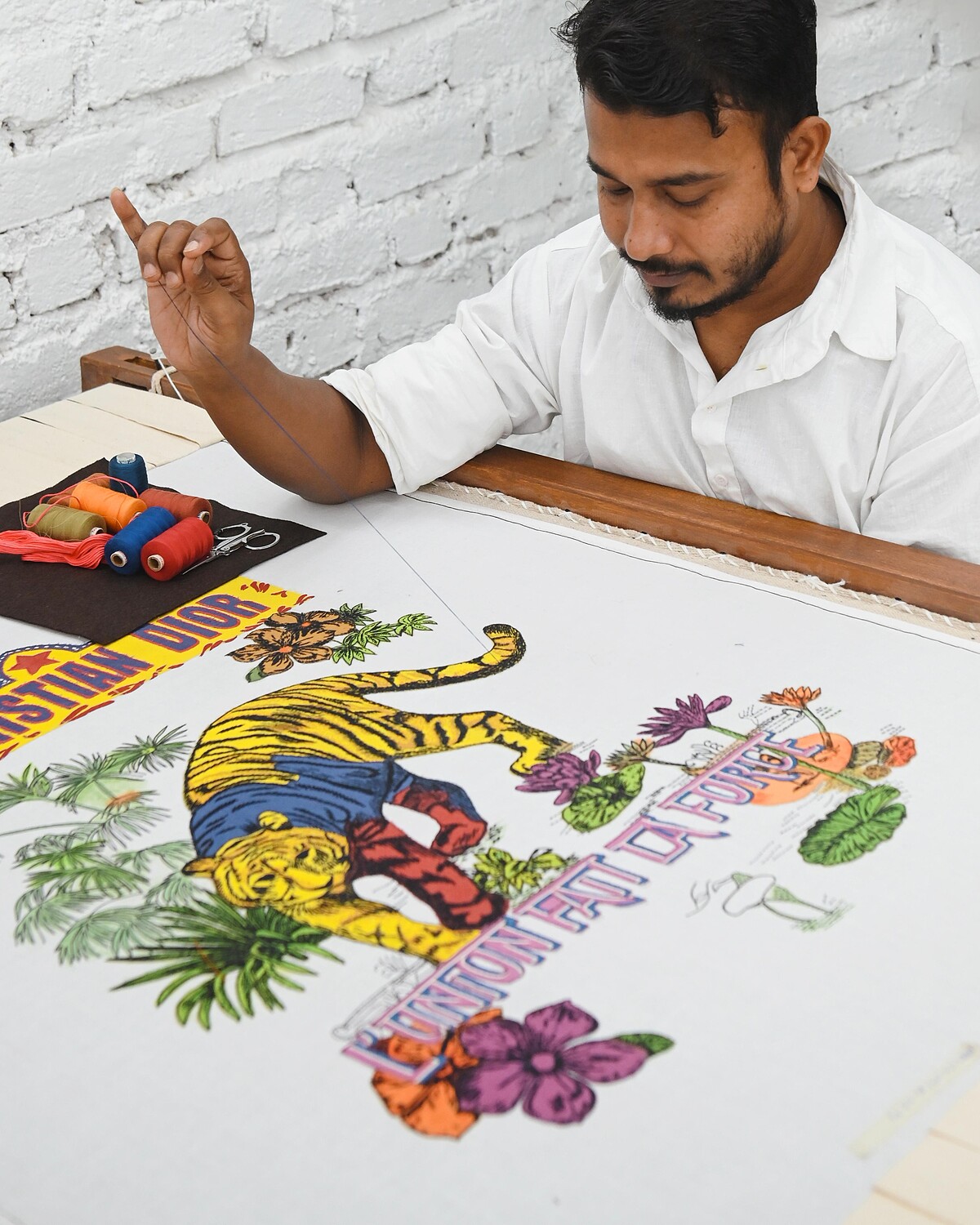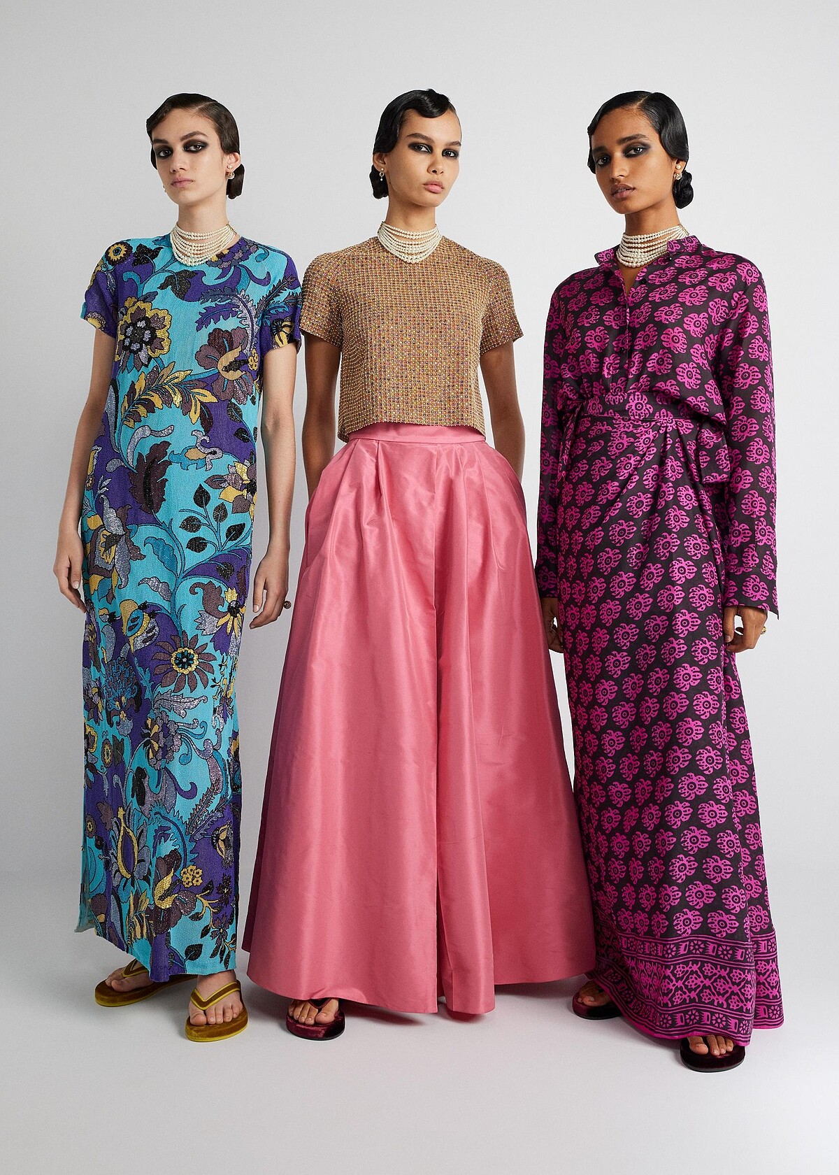 在系列中,你可以看到實用主義與來自印度南部泰米爾納德邦 (Tamil Nadu) 自古留存的傳統絲織工藝的巧妙融合。讓我們回溯到 1962 年的四月天,當時的創意總監 Marc Bohan 在印度旅行期間同樣在孟買與德里這兩個印度大城發表品牌系列作品,注入現代風格。時至今日,Dior 與印度的聯繫再次從記憶中甦醒。