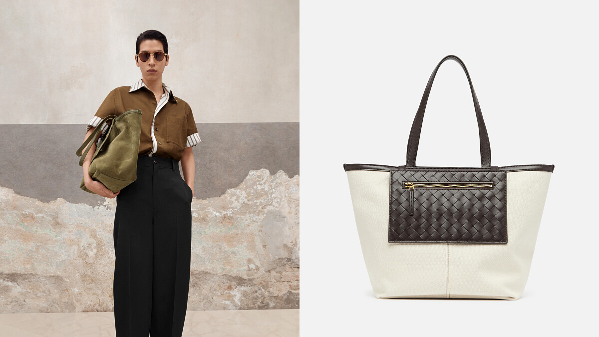 每季包奴們最期待的新包,Bottega Veneta本季為你獻上可以和男友一起共享的Flip Flap托特包,無關性別的中性外型,一共有全皮/麂皮/帆布拼接,三種不同樣式,編輯私心最推帆布拼接款,率性休閒之餘,中性色調也比較容易融入不同的穿搭風格。