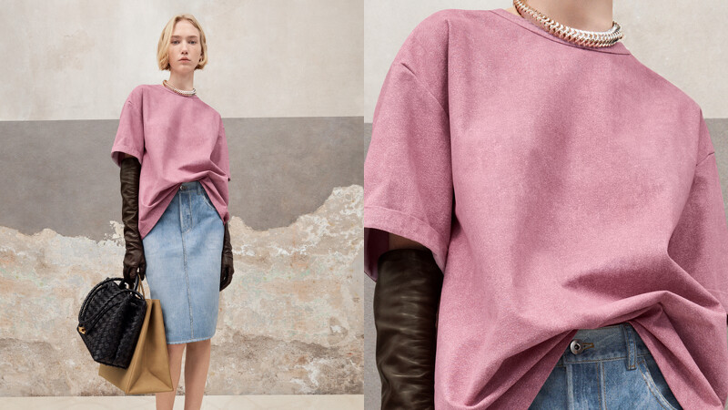 在之前的系列中,我們已見識到Matthieu Blazy怎麼把皮質透過不一樣的處理方式變成牛仔褲和法蘭絨襯衫(超模Kate Moss所演繹的那一件),本季Matthieu Blazy又有新玩法——將皮革揉成棉質的既視感!這一件看似沒什麼的Oversized T shirt,藉由皮革的挺度呈現出棉質T較難呈現的立體廓形,屆時開賣務必要到店上親眼看過一遍才會懂當中材質障眼法的奧妙與神奇之處。