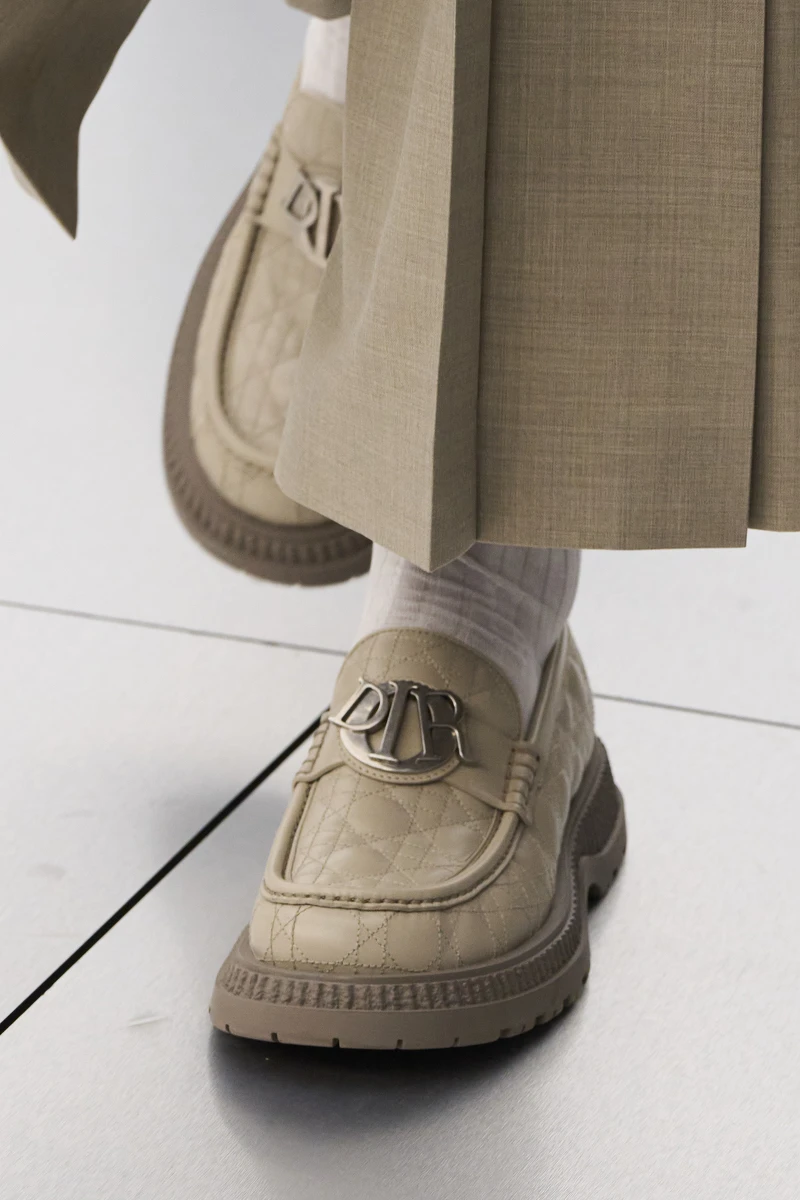 本季的樂福鞋款上除了有經典籐格紋,中間的金屬圓形標誌是否也很眼熟?沒錯,那正是來自Lady Dior包款上的Dior掛飾,絕妙的結合已經可以預見未來的熱賣潛力。