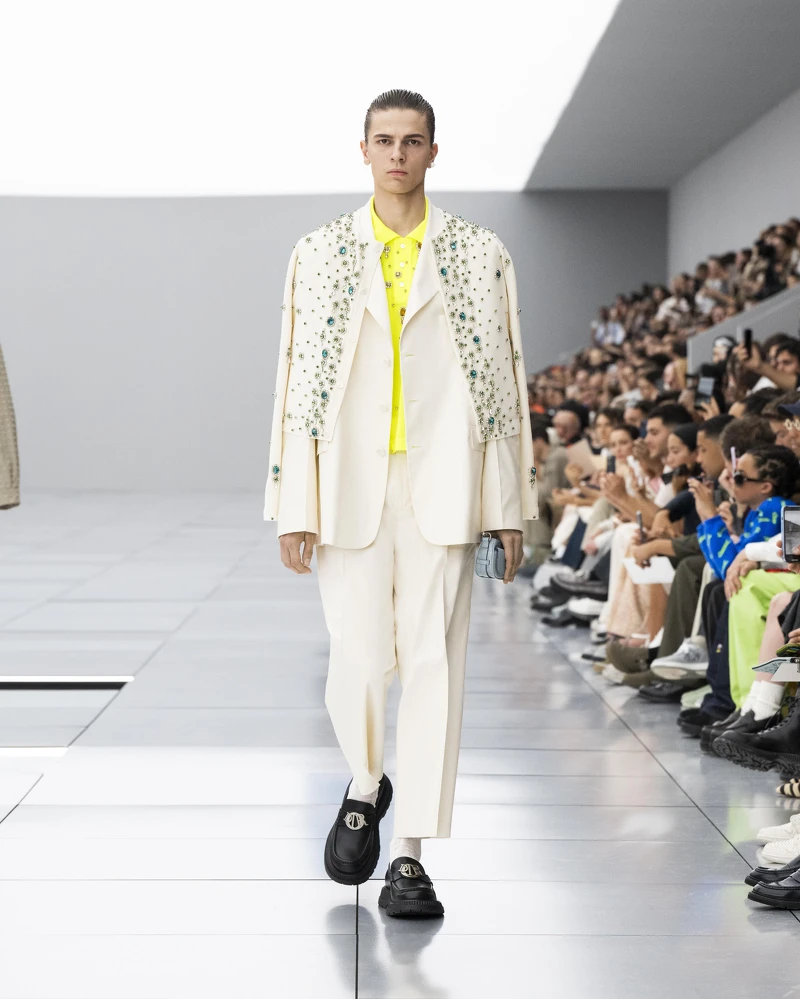 在接手Dior男裝滿5週年之際,Kim Jones透過他的眼光為品牌做了一個統整,他說道:「本系列首度以融合薈萃精神向歷任創意總監和各個時代的影響致敬,並注入當代元素。我利用特殊紋理與工藝,搭配Dior的知名符碼,特別是籐格紋,串起這些元素貫穿全系列。」