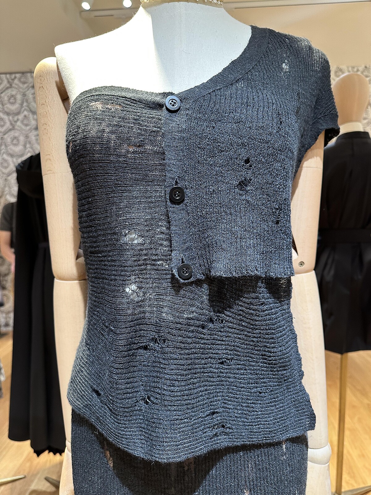 在對義大利藝術家 Alberto Burri 作品的理解上,詮釋了比如被火燒過的痕跡、抽絲的不規則輪廓、撕裂感等細節,「時間」這件事被 Maria Grazia Chiuri 巧妙地說得生動有趣。針織衫更為本季的重點單品,講究的服裝面料順著身體「流動」讓身形得以刻劃出優雅絕美的姿態,包覆舒適且溫暖輕盈。