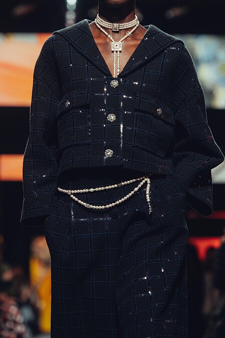 香奈兒藝術總監 Virginie Viard 在香奈兒2024春夏高級時裝系列中融入了多彩、黑色及粉色,融合經典雋永的斜紋軟呢材質,製作出摩登精緻的長禮服,也可以看見充滿年輕活力的條紋毛巾布外套,或是細緻優雅的蕾絲洋裝展現了屬於女人的溫柔與力量。
